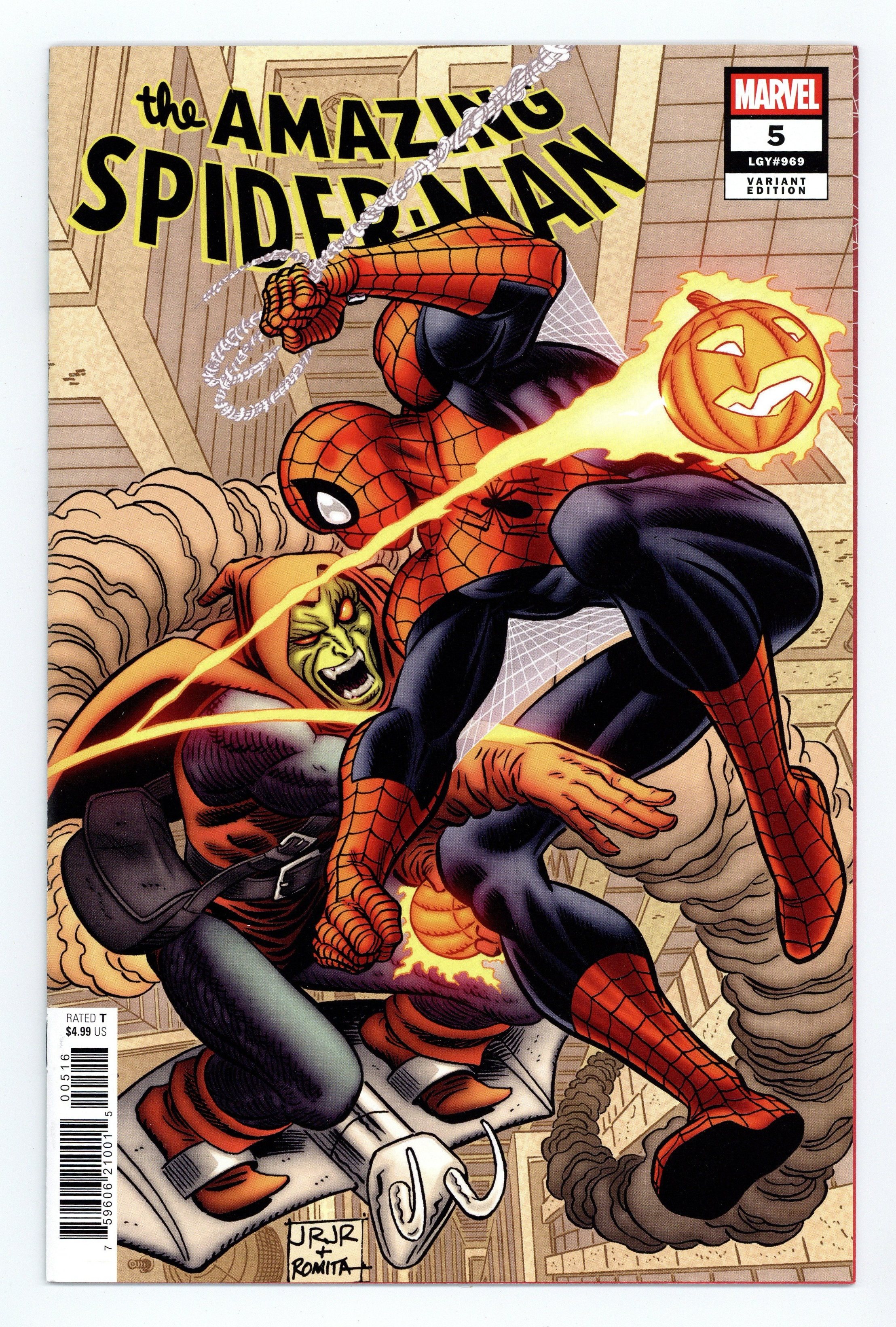 Tags: Spider-Man$18.00Limited 1 for 50 Retailer Incentive Variant Cover. Written by Joe Kelly. Art by Pepe Larraz. Cover by John Romita Jr.; John Romita Sr. NO HOPE AGAINST THE HOBGOBLIN! As HOBGOBLIN's assault tears SPIDER-MAN's mind (and limbs) apart, Kingsley unleashes his wrath on those nearest and dearest to Peter Parker. And this is a deadly race against time Spider-Man can't afford to lose - even as he risks losing his sanity to win! 32 pages, full color. Rated T Cover price $4.99.