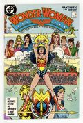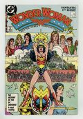 Direct Edition. In this post-Crisis on Infinite Earths re-imagining of the Wonder Woman mythos, Diana is born of clay, growing on Paradise Island to become the champion of the Amazons. "The Princess and the Power!" Part 1 of 6, continued next issue. Script by Greg Potter, co-plot and pencils by George Perez, inks by Bruce Patterson. Perez inks first 2 pages and the final page. Wrap-around cover. No ads. Perez cover. 36 pgs. Cover price $0.75.