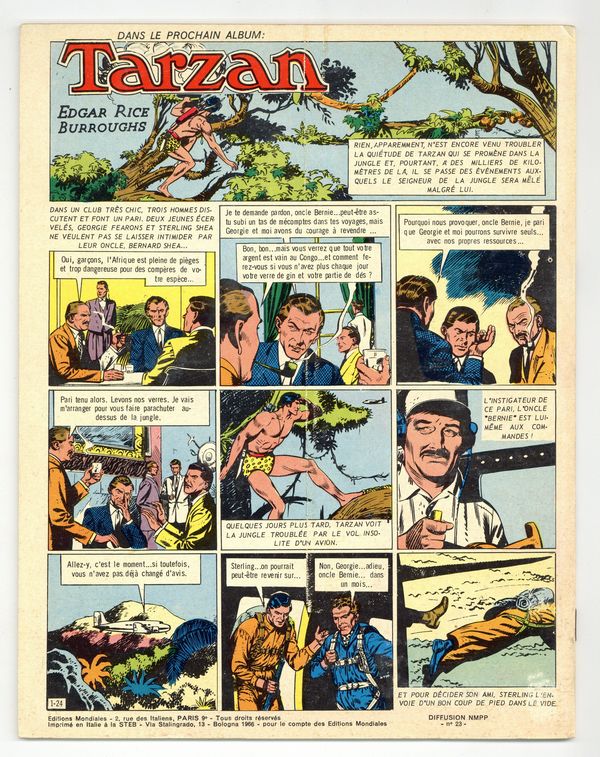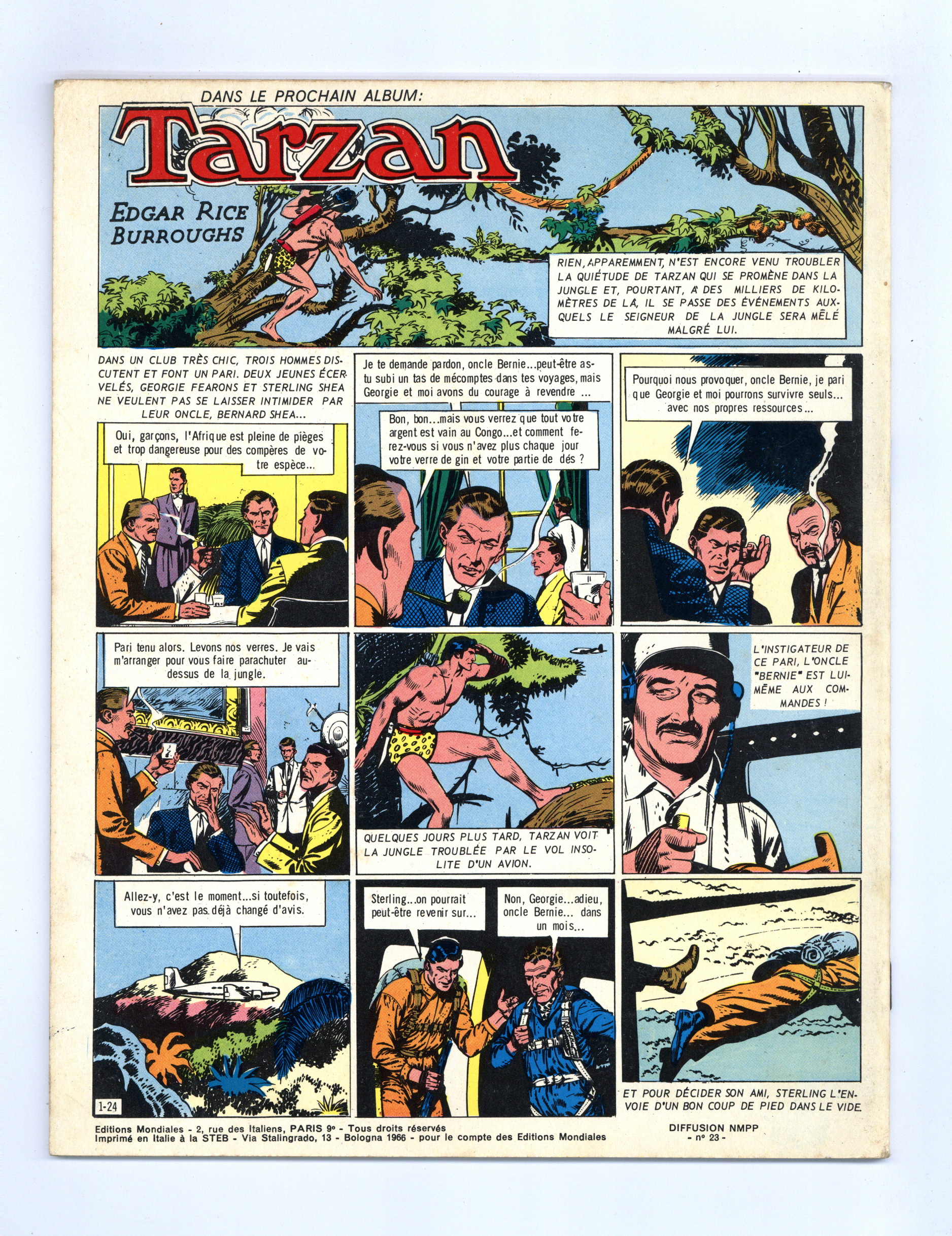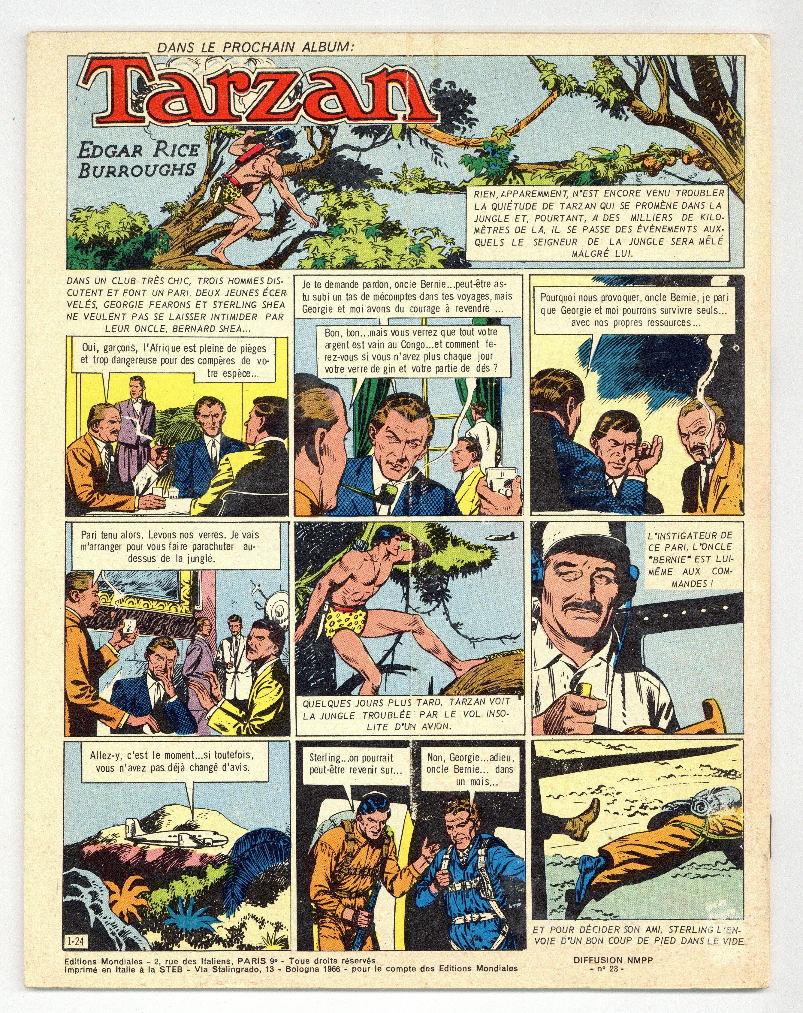 Published 1966 by Editions Mondiales.$54.00French language reprints of Tarzan. 8.25" x 10.5", 24 pages, full-color.