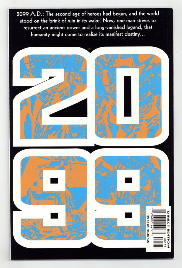 $35.00Written by Len Kaminski. Art and Cover by Mike McKone & Mark McKenna. Is it the end of the Marvel Universe...or the beginning of a bold new era? That's what the heroes of the year 2099 must determine! Featuring Spider-Man 2099, Captain America, Moon Knight 2099 (introduction), Uatu, Fantastic Four 2099 (origin), Xi'an Chi Xan and Ghost Rider 2099. 48 pages, full color. Cover price $5.99.