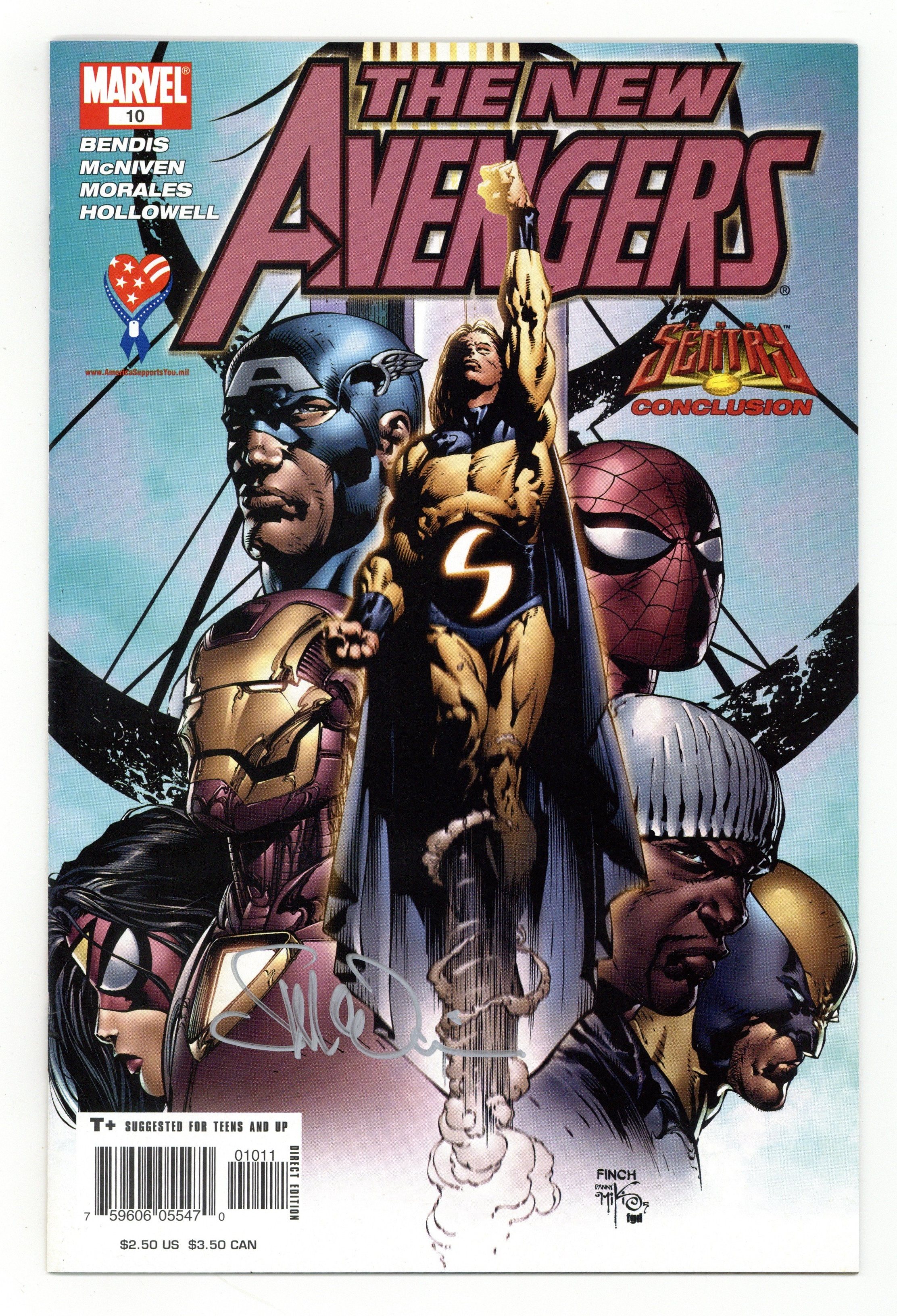 Written by BRIAN MICHAEL BENDIS Penciled by STEVE MCNIVEN Cover by DAVID FINCH A New Avengers three parter so blistering that its blown up to four parts! The mystery of the Sentry is finally revealed and it affects the entire Marvel super hero community.Guest starring the Astonishing X-Men, the Inhumans, the Fantastic Four and many, many more! Part 4 (of 4) 32 PGS./T+ SUGGESTED FOR TEENS AND UP ...$2.50 Cover price $2.50.