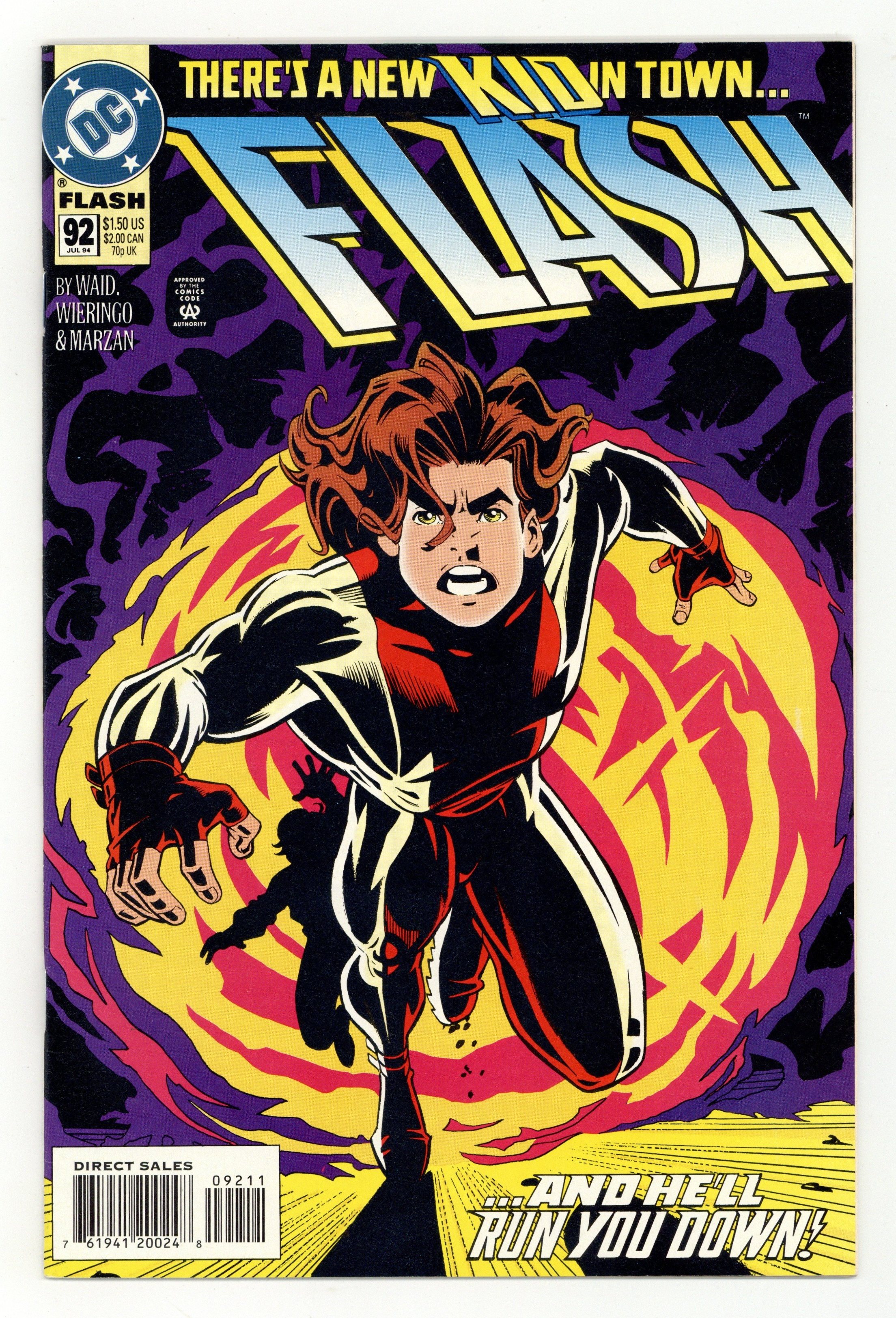 Direct Edition. In "Reckless Youth, Chapter One: Speed Kills", Iris Allen arrives from the future, bringing with her a special someone. Featuring the first appearance of Impulse. Part 1 of 3, continued next issue. Script by Mark Waid, pencils by Mike Wieringo, inks by Jose Marzan, Jr. Wieringo/Marzan, Jr. cover. Cover price $1.50.
