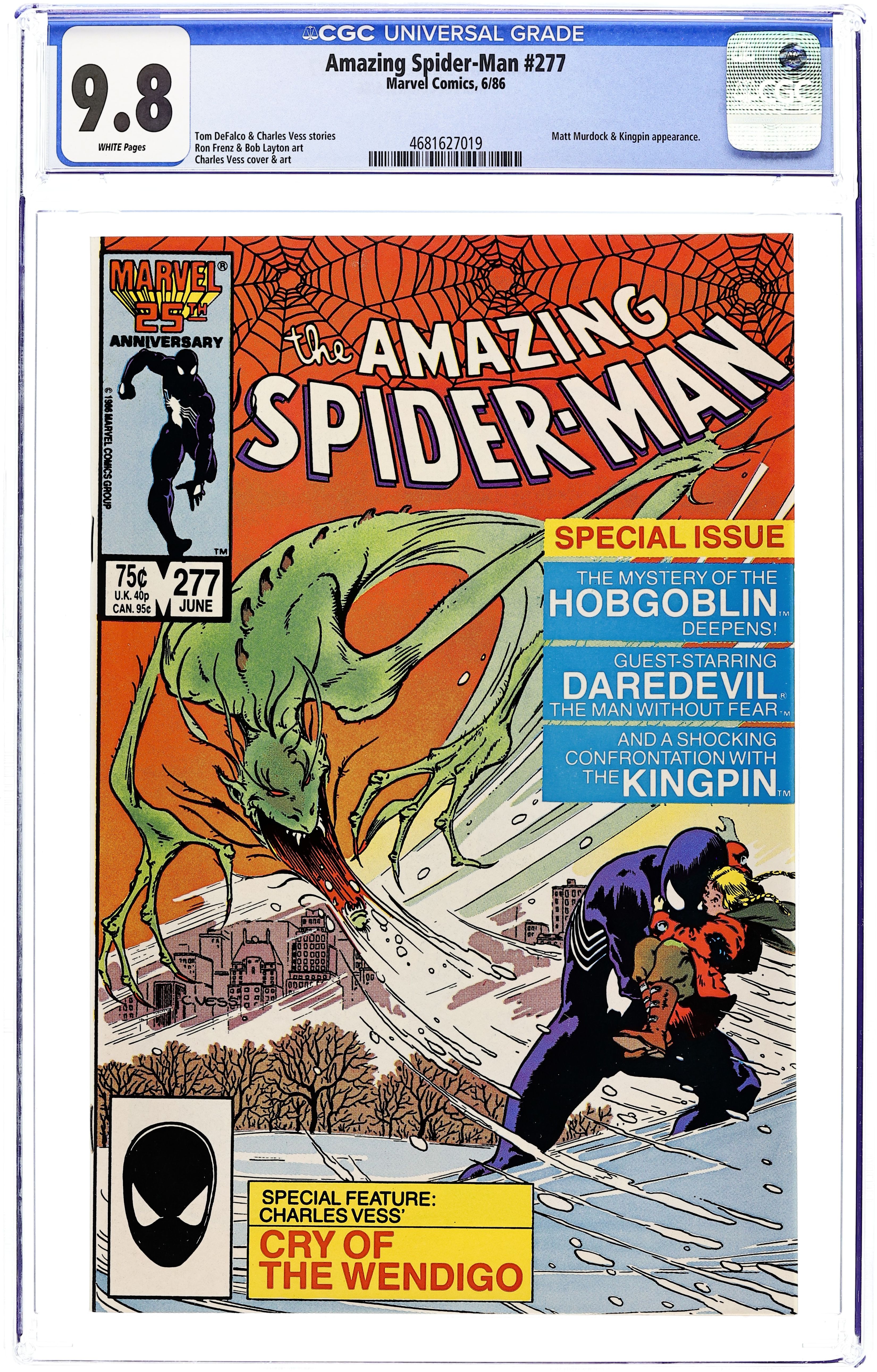 Direct Edition. "The Rules of the Game!" Script by Tom DeFalco. Pencils by Ron Frenz. Inks by Bob Layton. Cover by Charles Vess. Peter Parker visits Matt Murdock inside a homeless shelter and is shocked to see the sad condition of his occasional crime-fighting ally. The Kingpin has ruined Matt's life. Somebody has to deliver the payback! Will it be the Amazing Spider-Man? Cameo appearances by the Arranger and Mary Jane Watson. Second story: "Cry of the Wendigo!" Script and art by Charles Vess. During a winter storm, a group of criminals kidnaps the young daughter of a Canadian diplomat! Auspiciously the web-slinger is close by and pursues the kidnappers into Central Park! However the combination of ice, wind, and snow disorient and debilitate the wall-crawler. Spider-Man needs help to save this young girl...perhaps help from the Wendigo! (Notes: The letters page includes a map of Central Park (by Charles Vess) showing where the action took place. This issue includes a full-page ad featuring Captain America and the "Hunt for Scourge" storyline. This issue was reprinted in Marvel Tales 285.) 36 pages. Cover price $0.75.