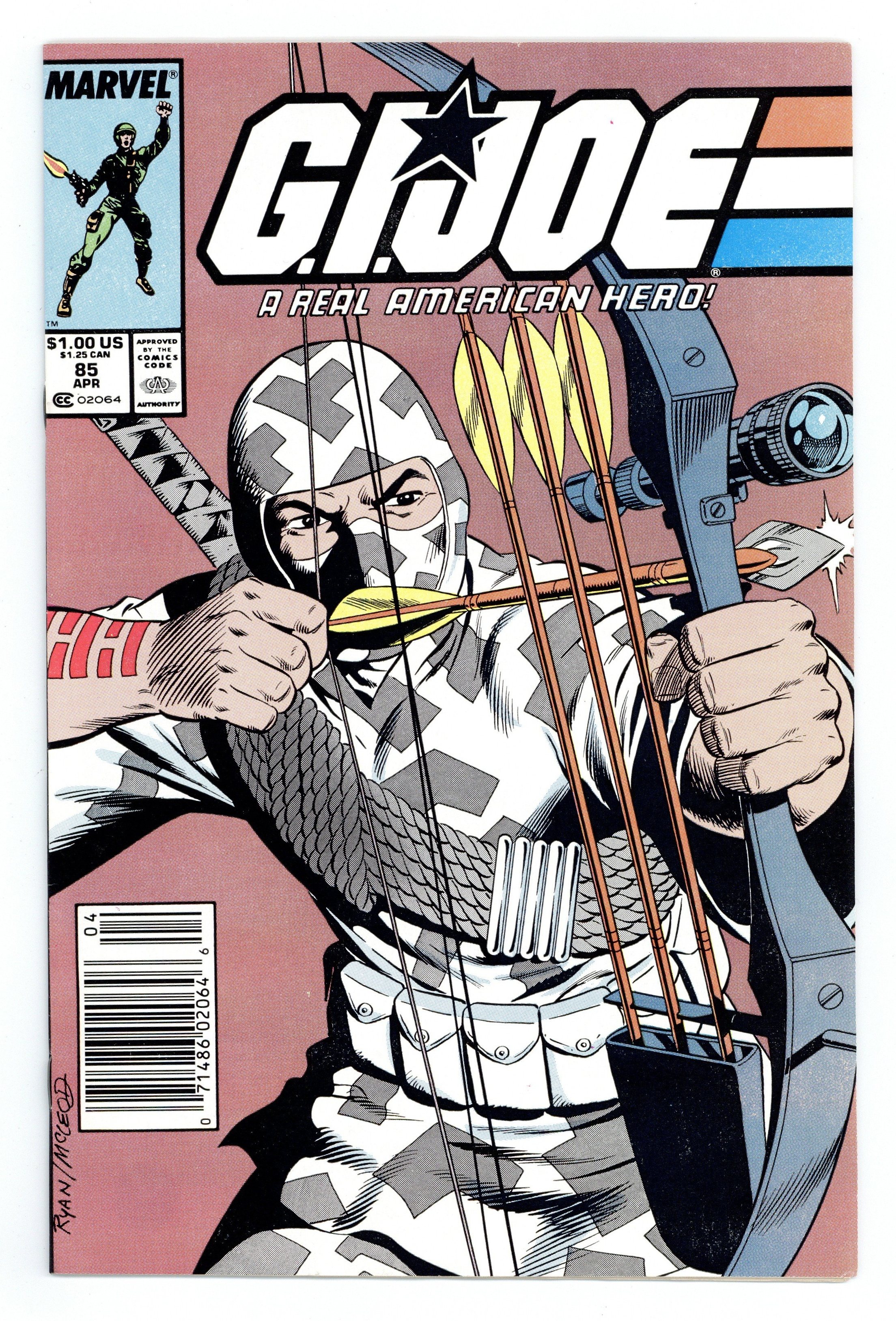 Tags: G.I. Joe$17.75Newsstand Edition. In "SFX," Storm Shadow and Jinx fight a running battle with Zartan. Characters: FEATURE: Storm Shadow; Jinx; VILLAINS: Zartan; Ninjas. Note: This is a "silent" issue as it has no text with lettering credits being for sound effects only. Written by Larry Hama, with art by Paul Ryan and Randy Emberlin. Cover by Paul Ryan and Bob McLeod. Cover price $1.00.