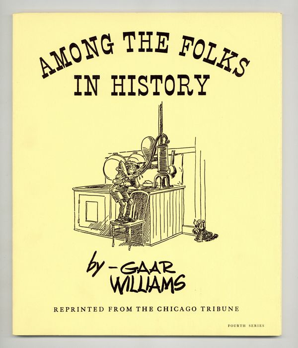 Published 1935 by Chicago Tribune.$216.00Set-04 - "Among the Folks in History - Fourth Series!" Portfolio by Gaar Williams. Gaar Williams, whose life in the Midwestern small town of Richmond in the 1890's gave inspiration to his popular work, served as a staff artist for the Chicago Daily News and the Indianapolis News before settling in Chicago permanently to work for the Chicago Tribune until his death in 1935. Gaar Williams's cartoons could be seen in thirty-nine newspapers around the country. These prints are reproductions of cartoons that originally appeared in the Chicago Tribune newspaper from 1927-1934. SET-04 includes 25 prints, B&W, held in a wrap-around slip folder. 8.25-in. x 10.25-in.