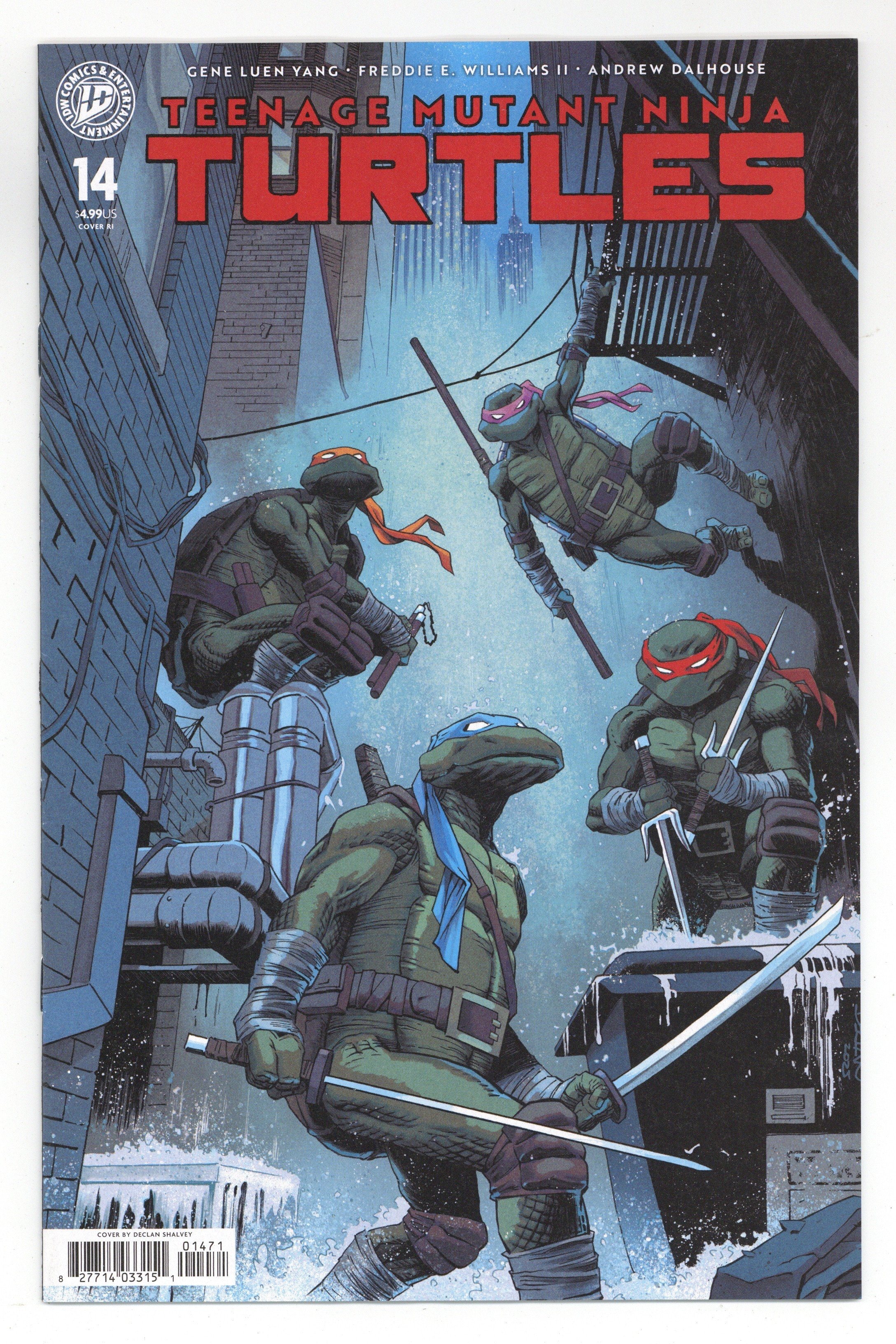 Published Jan 2026 by IDW Publishing.$27.00Limited 1 for 75 Retailer Incentive Variant Cover.(W) Gene Luen Yang (A) Freddie E. Williams II (CA) Declan Shalvey Ujigami strikes again! The mysterious new villain has claimed another victim in their drive to make the city safe at any cost. While the Turtles still struggle to get any upper hand on their new adversary, Donatello has suspicions about their true identity that may mean a whole new set of problems for our half-shell heroes. Trying to get ahead, the Turtles set a trap using Ujigami's likely next victim as bait: the leader of the Foot Clan, Karai! 28 pages, not rated, Full Color Cover price $4.99.
