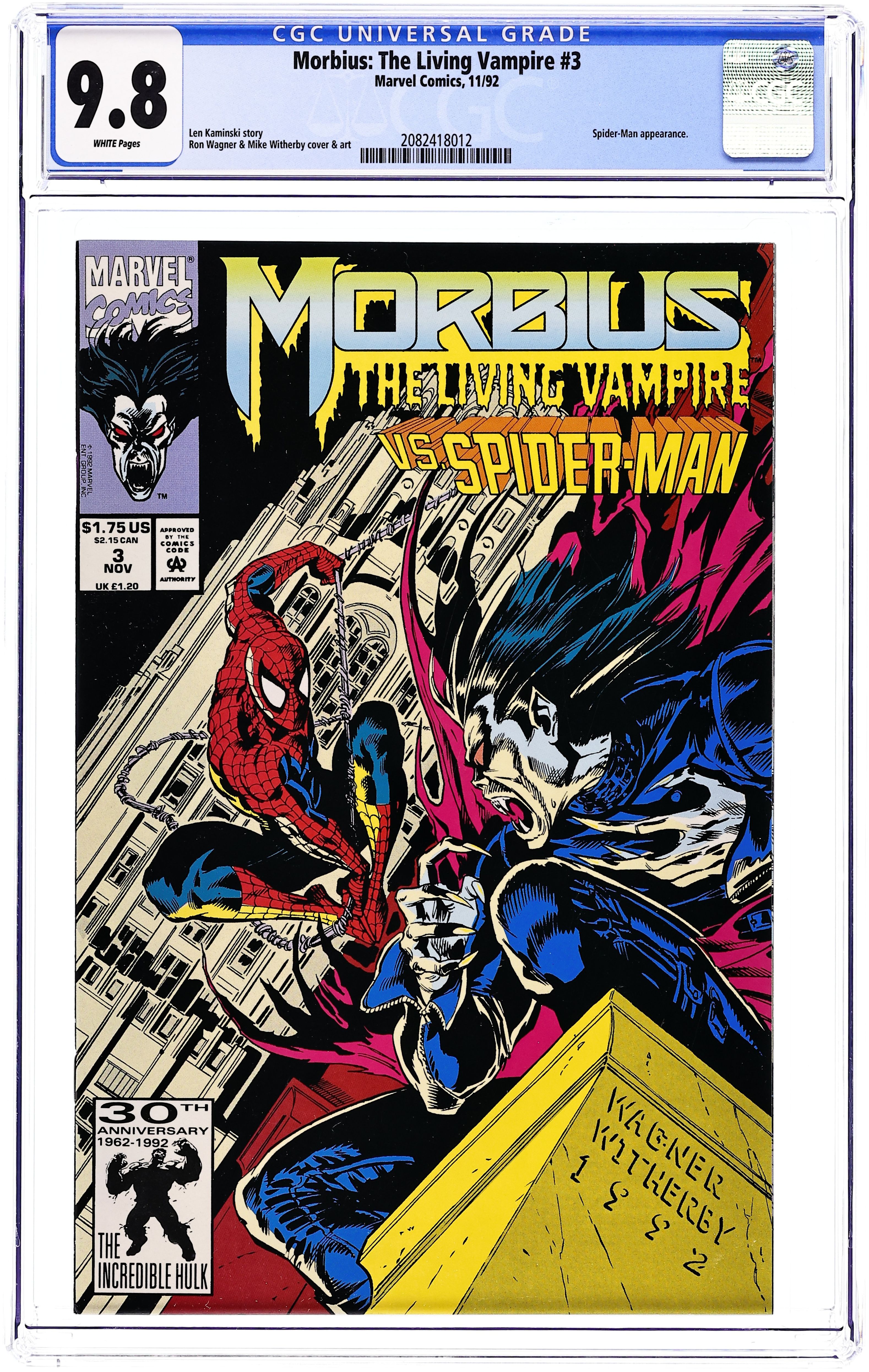 Direct Edition. Story by Len Kaminski. Art and Cover by Ron Wagner and Mike Witherby. Spider-Man app Cover price $1.75.