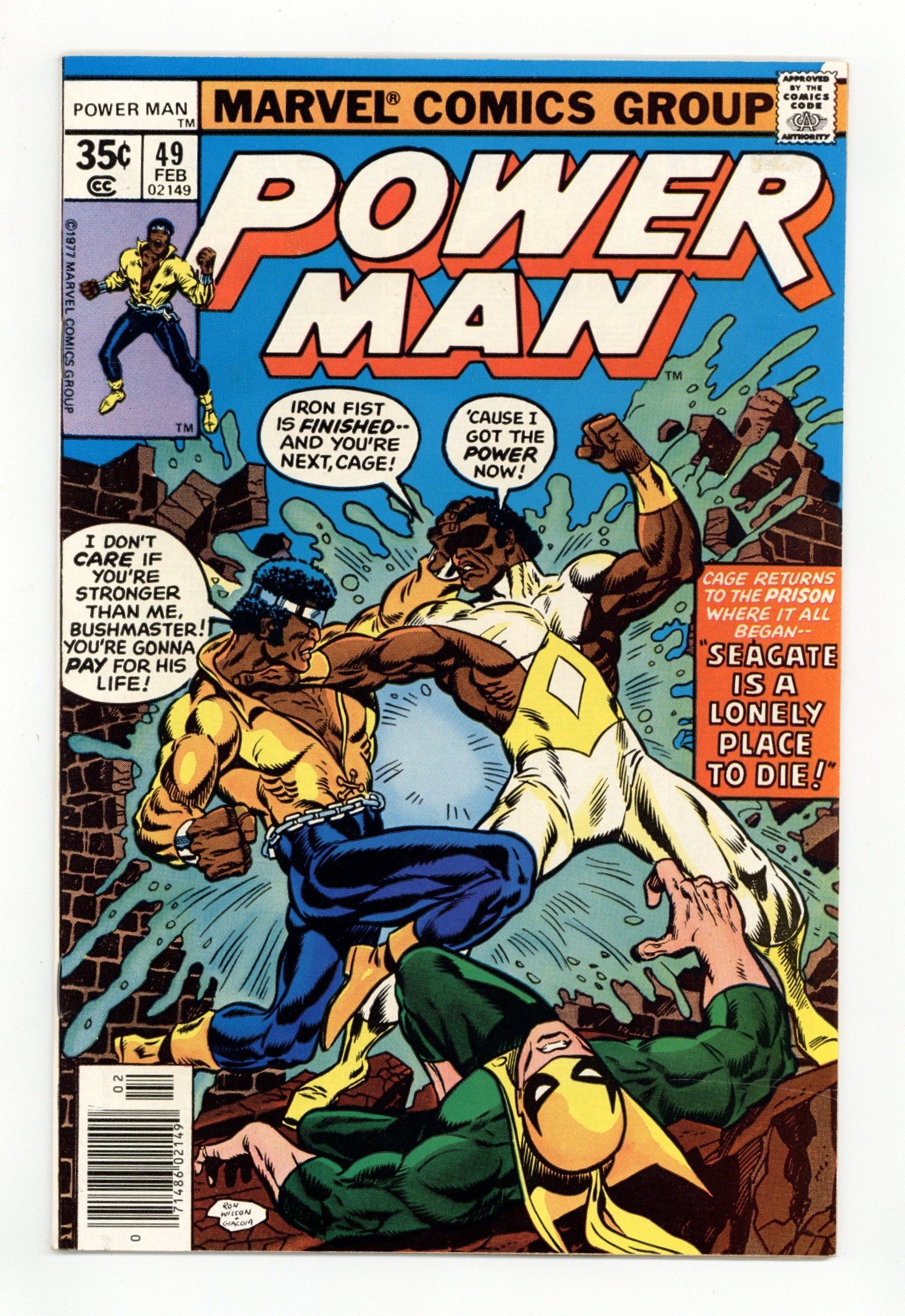"Seagate is a Lonely Place to Die!" Part 3 of 3. Guest-starring Iron Fist and the Daughters of the Dragon. Story by Chris Claremont. Art by John Byrne and Dan Green. Luke Cage returns to the prison where it all began, and comes face-to-face with the powerhouse known as Bushmaster. But, can even Power Man's diamond-hard fists and the power of the "Iron Fist" defeat the ultimate product of the experiments that gave Cage his powers? 32 pages. NOTE: This is last issue titled just Power Man. Cover price $0.35.