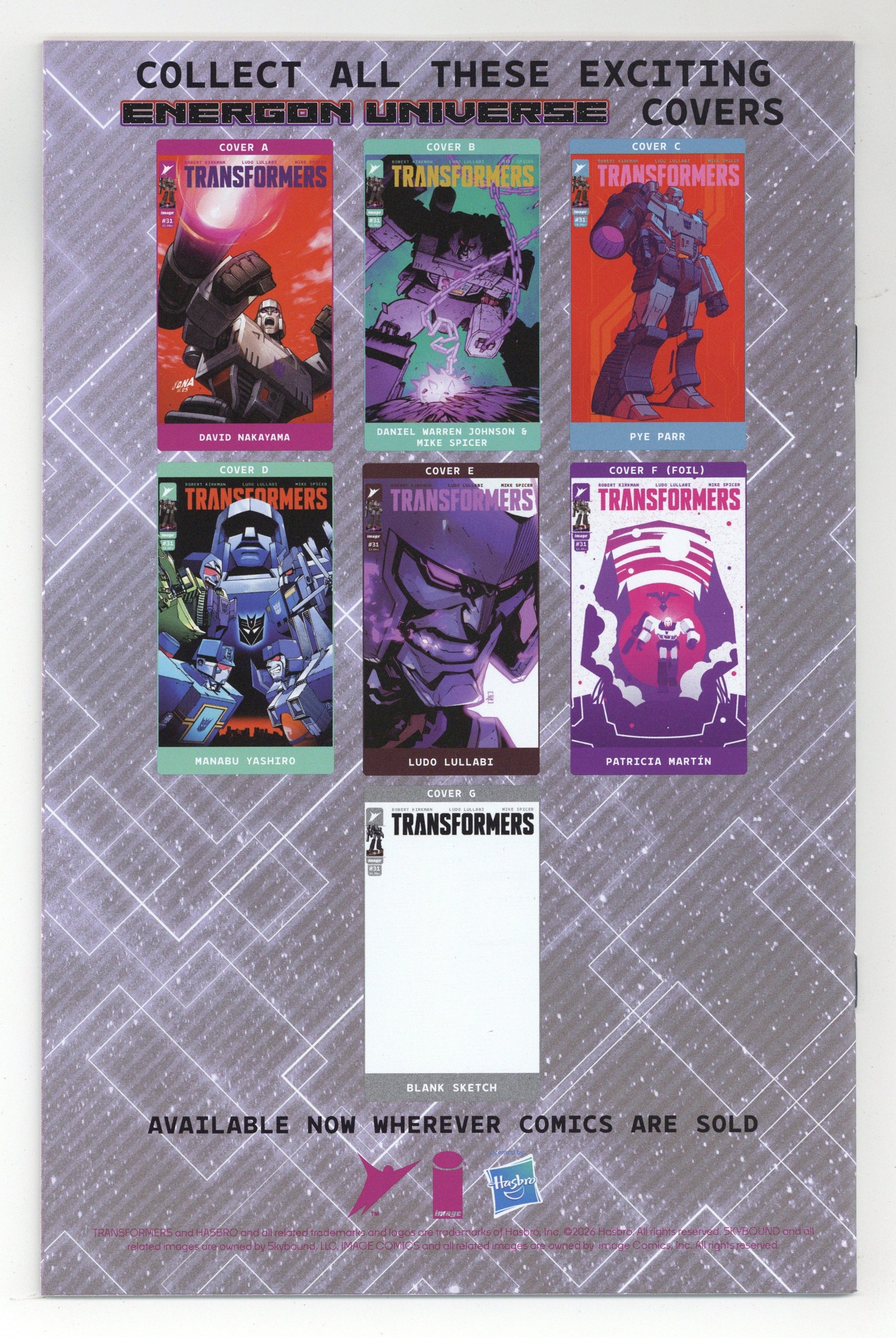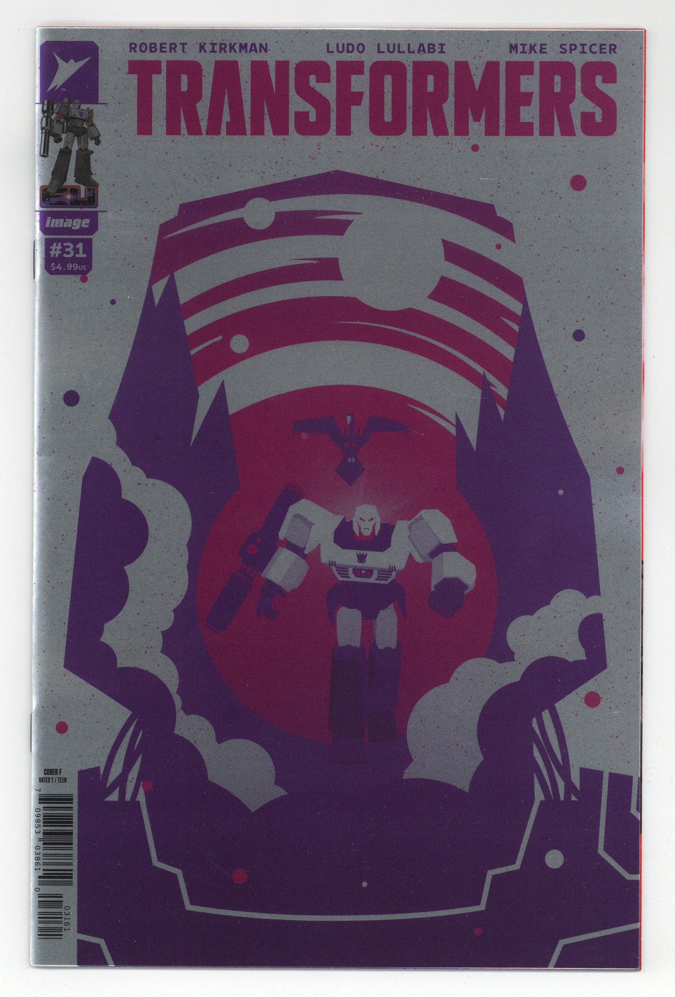 Tags: Transformers$100.00Limited 1 for 100 Retailer Incentive Variant Cover. (W) Robert Kirkman (A) Ludo Lullabi, Mike Spicer (CA) Patricia Martin NEW STORY ARC THE SECRET OF MEGATRON REVEALED! Megatron has a vision that will change the course of his life. And no one in the Energon Universe is safe. 28 pages, T, full color Cover price $4.99.