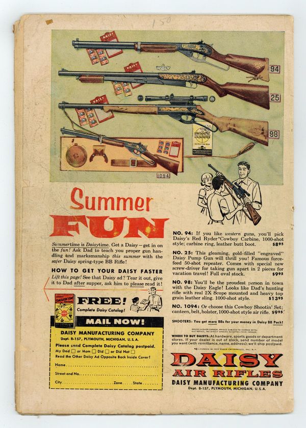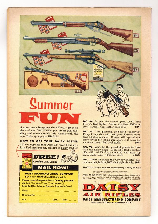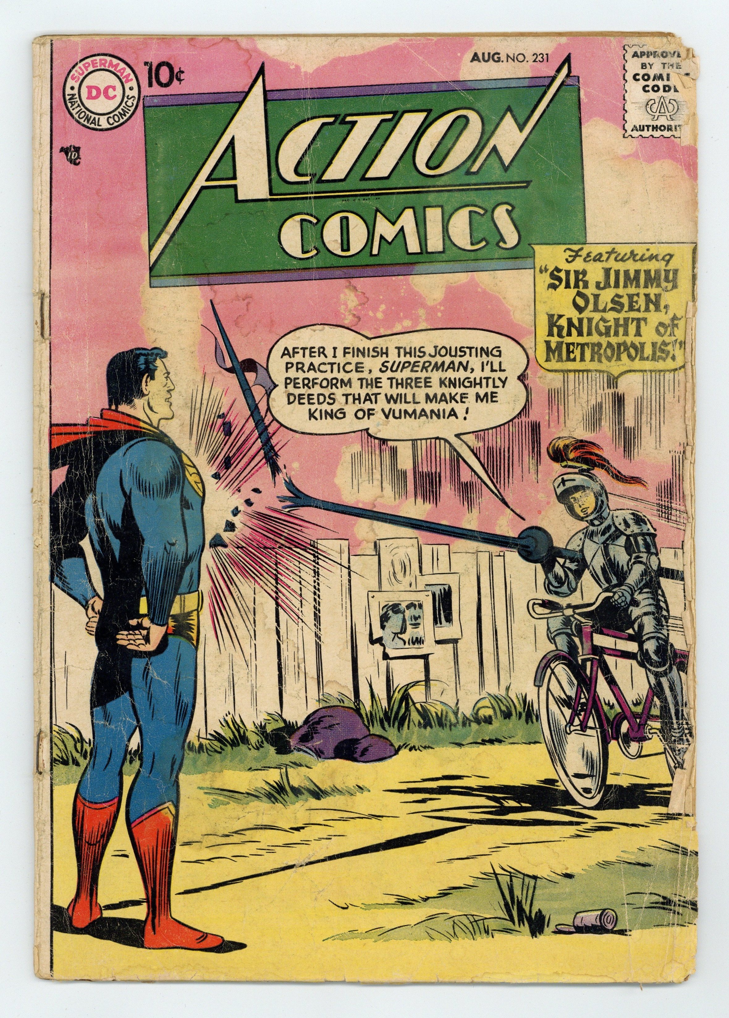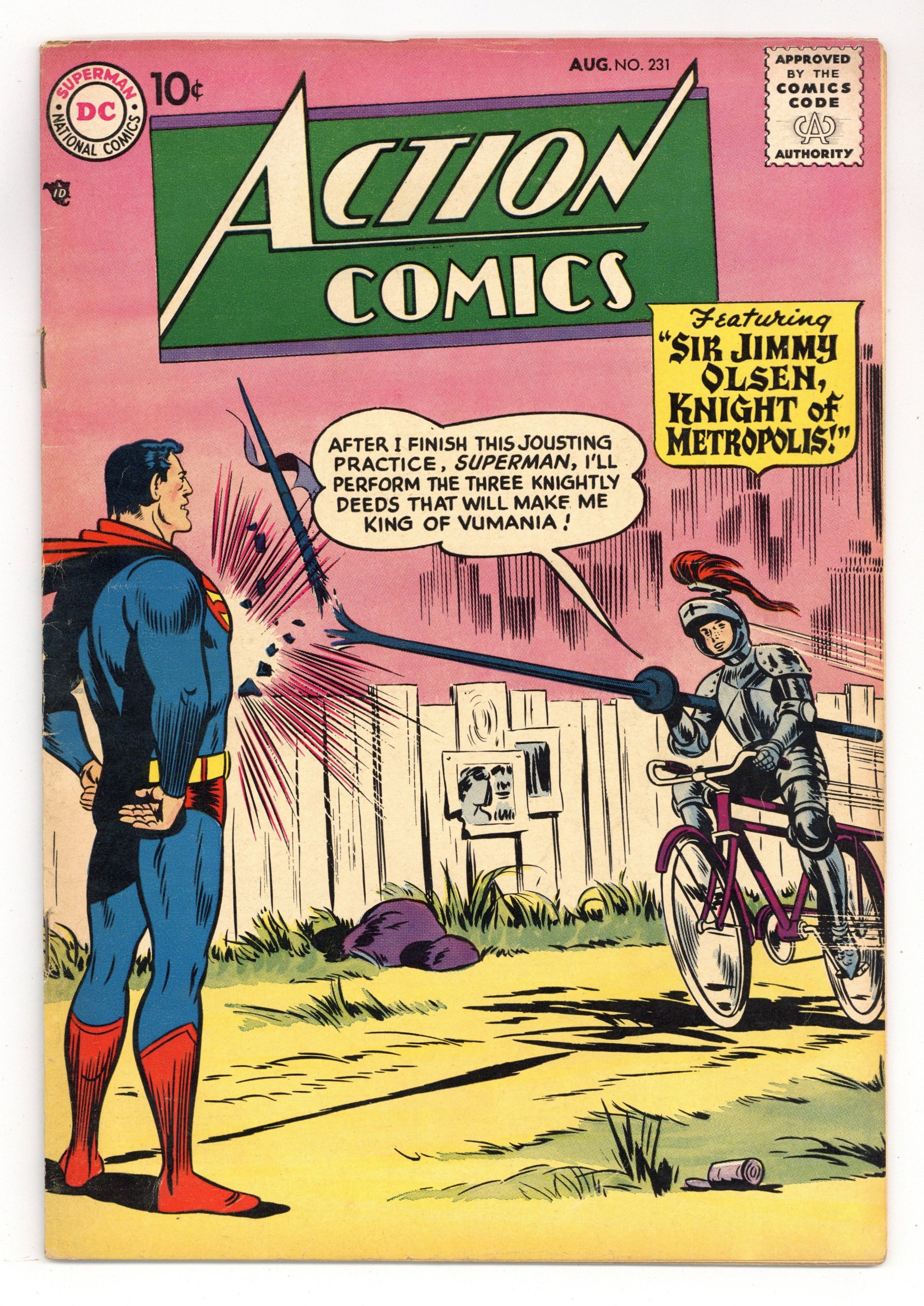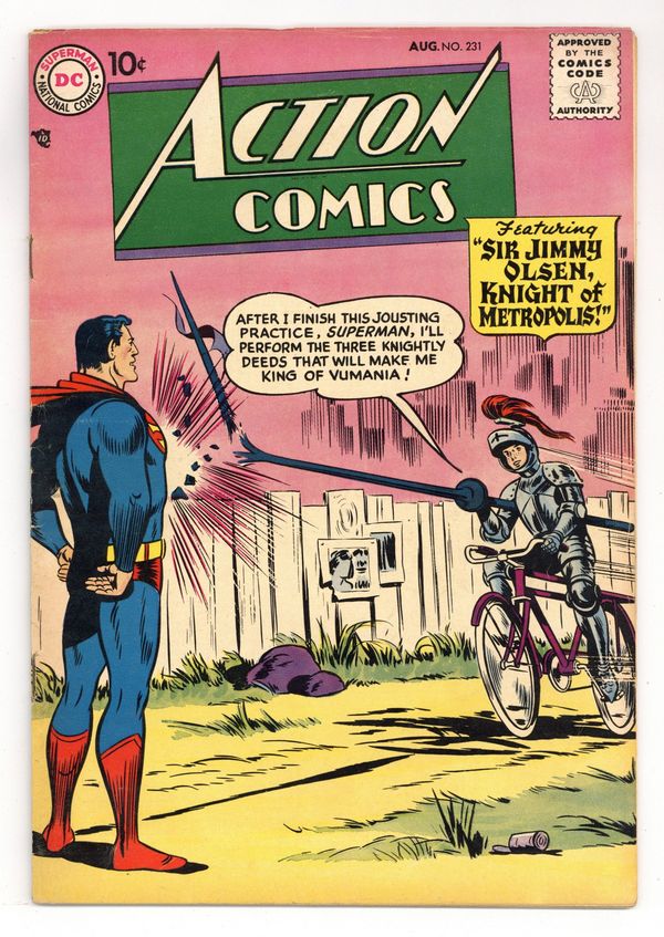 Cover pencils by Wayne Boring, inks by Stan Kaye. "Sir Jimmy Olsen, Knight of Metropolis," script by Otto Binder, pencils by Wayne Boring, inks by Stan Kaye; Jimmy Olsen finds that he will be the king of the island of Vumania if he performs three tasks, but a gang of crooks is out to see that he doesn't. "Congo Bill's Useless Partner," script by Jack Miller, art by Nick Cardy. Stunts For A Rainy Day article. "The Academy Awards of Space" starring Tommy Tomorrow and Planet Pete, script by Otto Binder, art by Jim Mooney. One-page Cannonball Charlie story by Henry Boltinoff. 36 Pages, Full Color. $.12 Cover price $0.10.