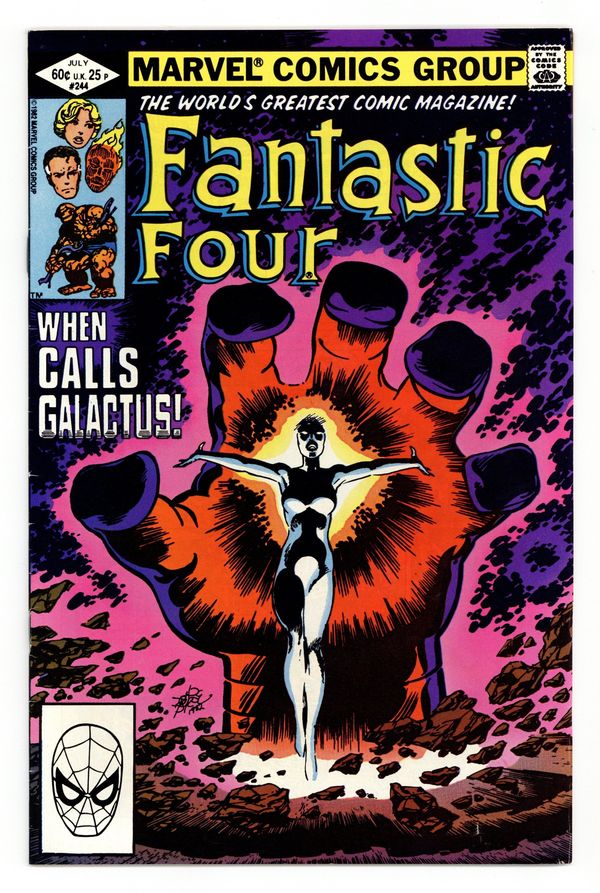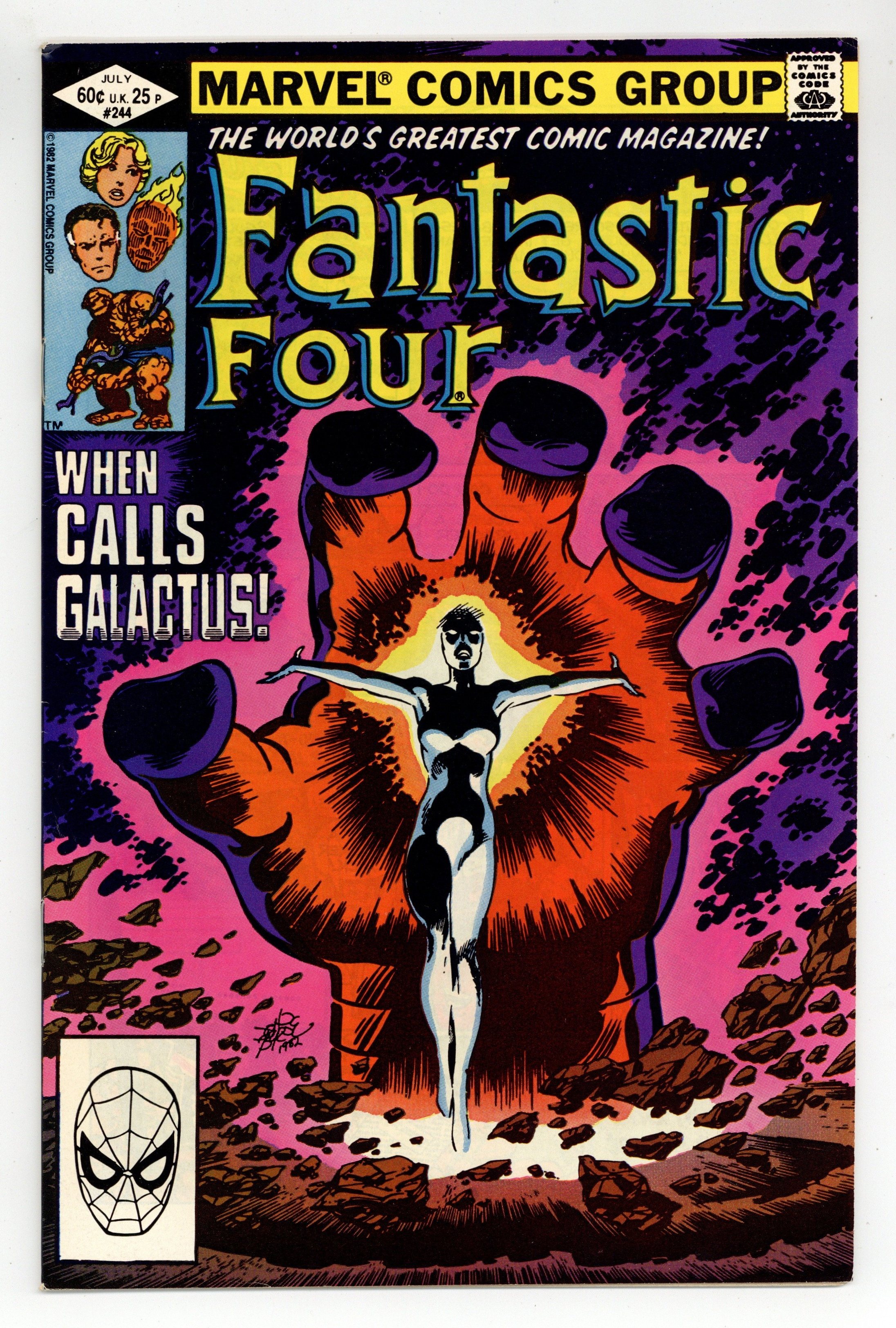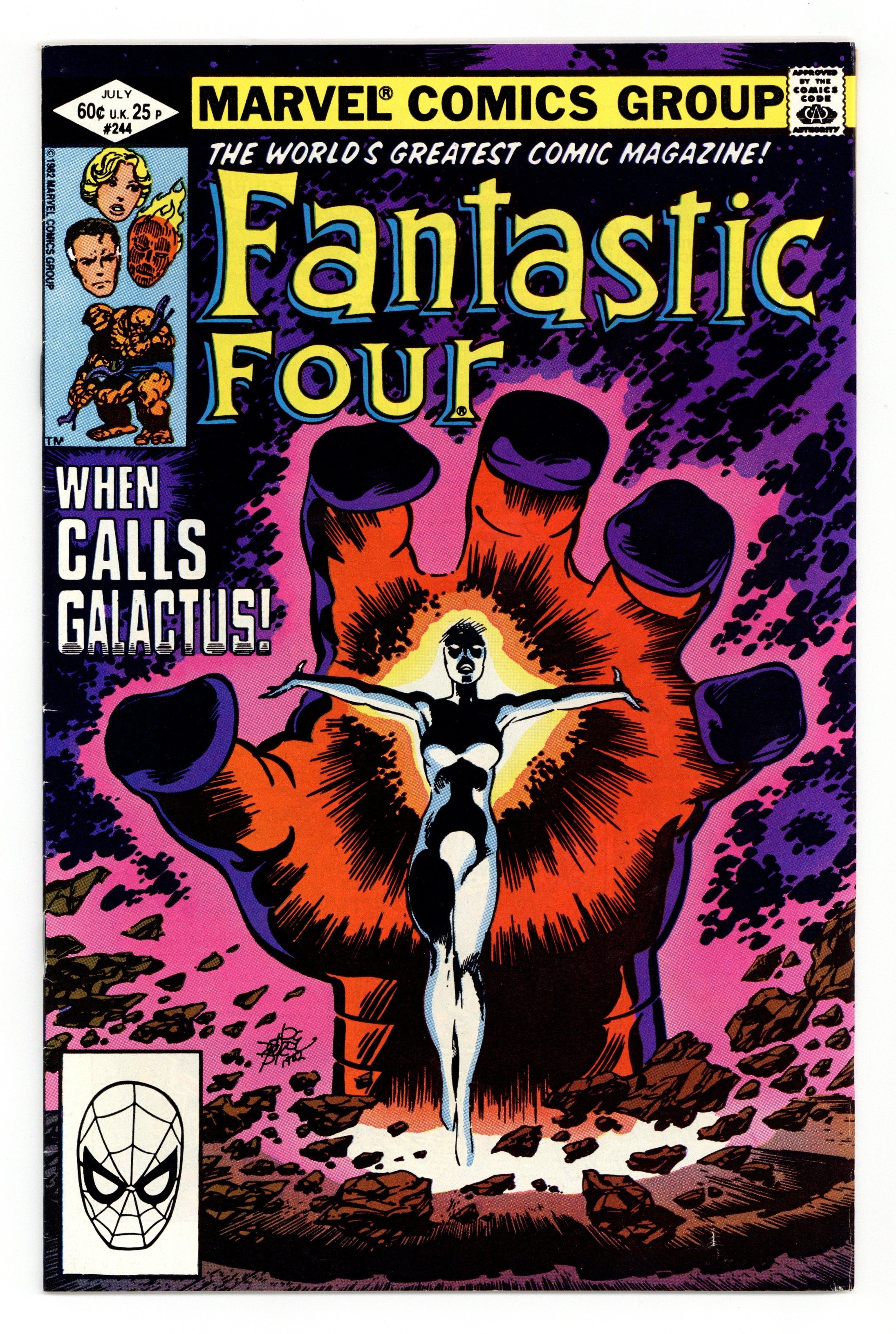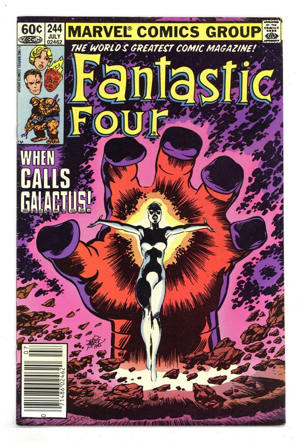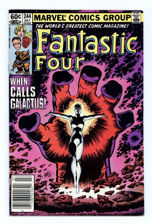 Ends Dec 8 8:19 PM CST Bid History 4 bids Current Bid $11 Your Secret Max Bid If you'd like to bid, please log in or register. Direct Edition. "Beginnings and Endings" Part 3 of 3. Script and Art by John Byrne. Cover by John Byrne. After an unprecedented victory over Galactus, the Avengers and the Fantastic Four face a major ethical decision: should they try to save the Ravager of Worlds or let him perish as his energies dwindle? Reed decides on the former and constructs a giant machine to revitalize Galactus! However, the Devourer of Worlds needs one more thing to complete his recovery...a new herald! In a stunning move, Frankie Raye volunteers! So where does that leave the Human Torch? First appearance of Nova (aka Frankie Raye). Cameo appearances by Captain America, Iron Man, Thor, Wasp, and Doctor Strange. (Notes: This trilogy was reprinted in 1989 in the trade paperback titled "Fantastic Four: Trial of Galactus." Reed's decision to save Galactus will come back to haunt the FF beginning in Fantastic Four 257.) 36 pages Cover price $0.60.