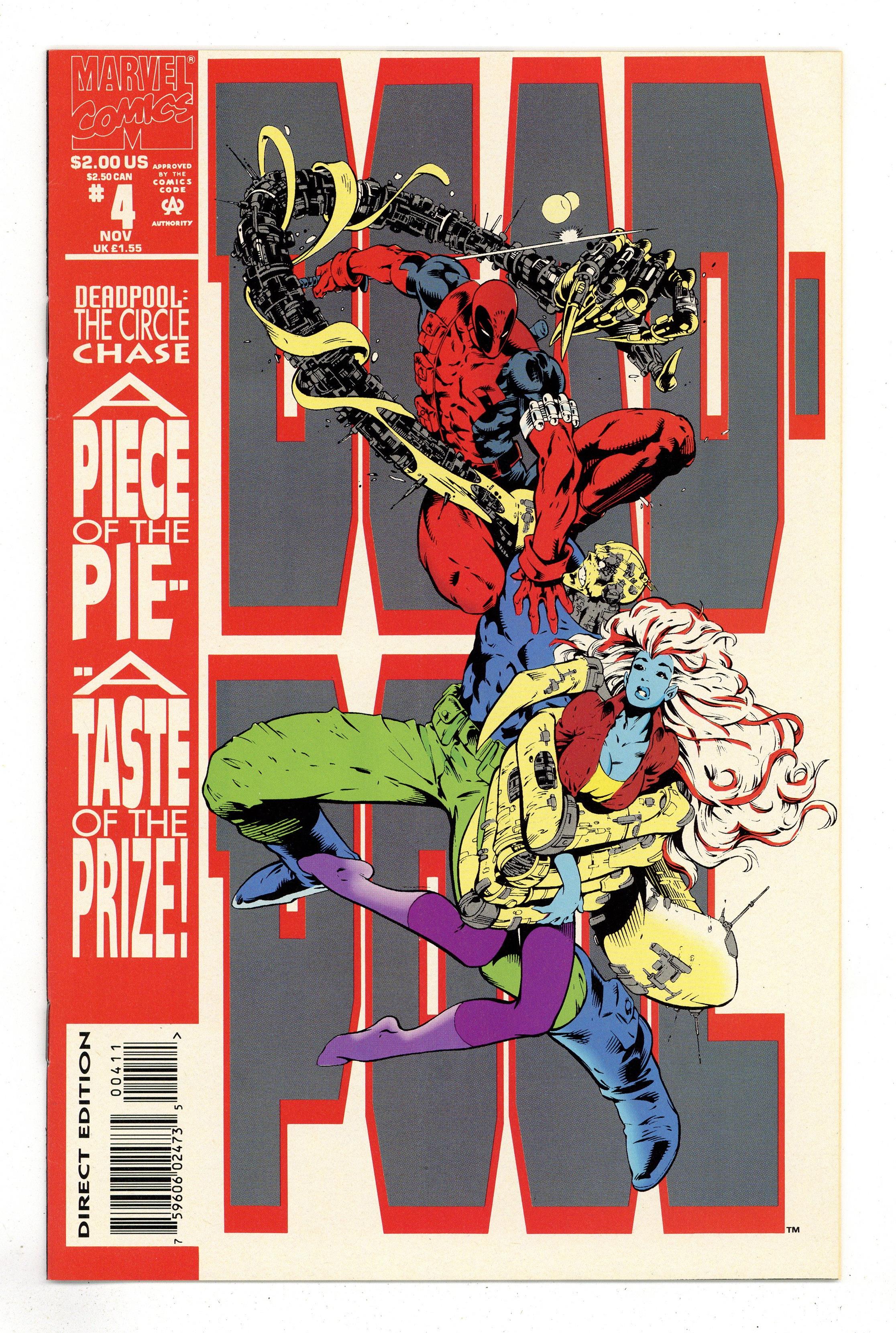 Direct Edition. The Circle Chase Round 4: Duck Soup - Written by Fabian Nicieza. Art by Joe Madureira and Harry Candelario. Don't miss the dramatic conclusion to the search for Tolliver's will! It's Deadpool against Slayback, plus Vanessa and Weasel against Zero in this page-turning slugfest! When Deadpool finally meets up with Vanessa, it may be too late to save her! 32 pages, full color. Cover price $2.00.