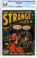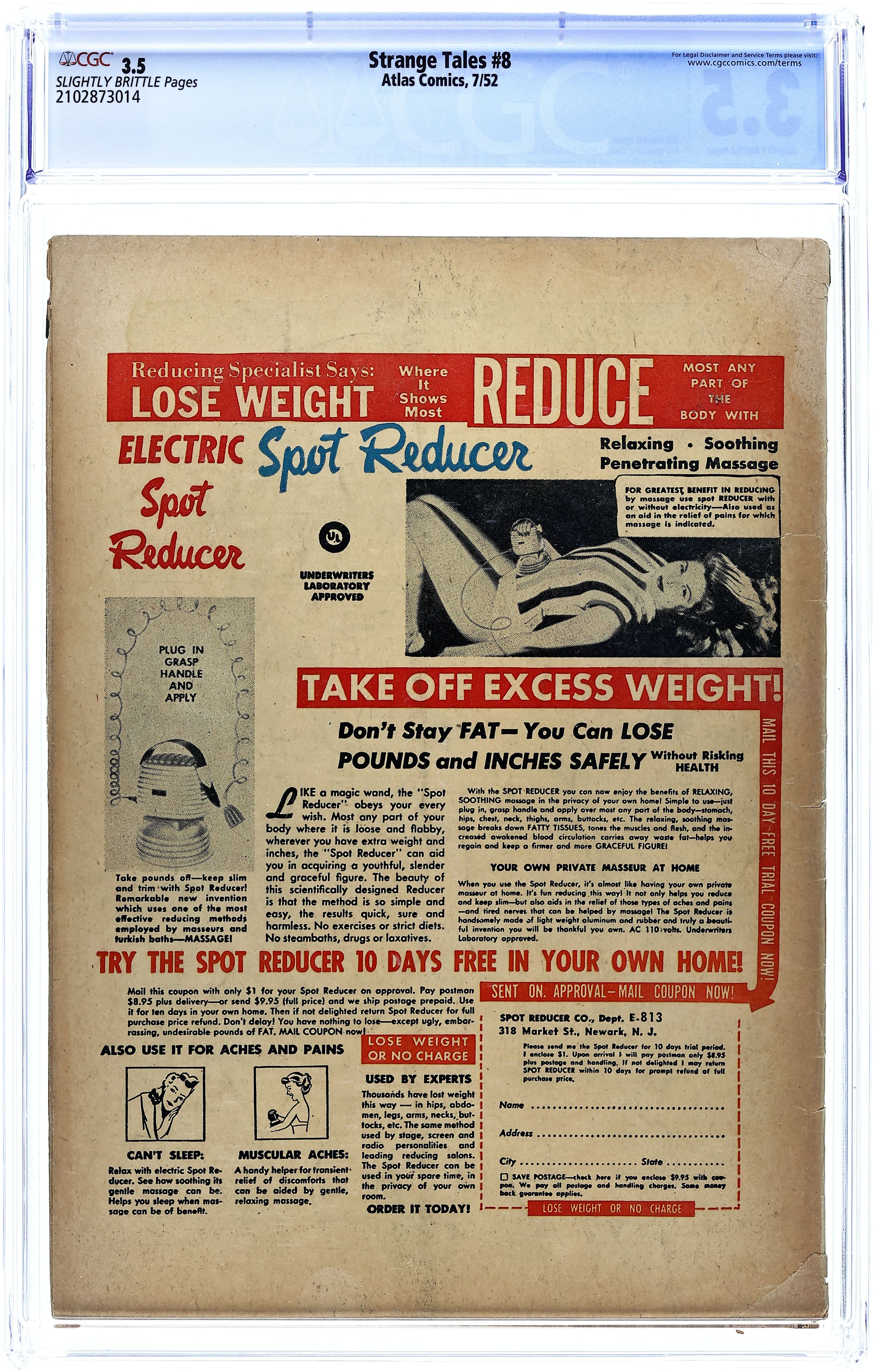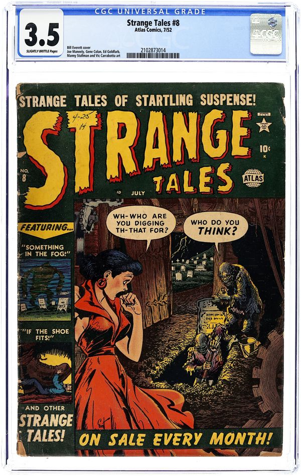 Cover art by Bill Everett. The Old Mill, art by Gene Colan; A mill hand disposes of his tyrannical boss by grinding him up. Escape text story. Fame, art by Manny Stallman; Universal rejection makes a would-be actor's mind snap and so he rents a tuxedo with his last few dollars and does a presentation on a building ledge before a gathered crowd until he makes the leap that will ensure his fame. The Storm, art by Vic Carrabotta; A killer hijacks a plane to escape the police; The pilot turns out to be Satan and he lands the plane in Hell. Something In the Fog, pencils by Ed Goldfarb, inks by Bob Baer; A group of smugglers run into the Flying Dutchman. If the Shoe Fits, art by Joe Maneely. 36 pgs. $0.10. Cover price $0.10.