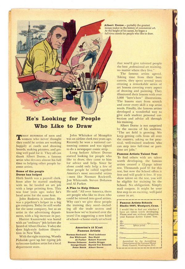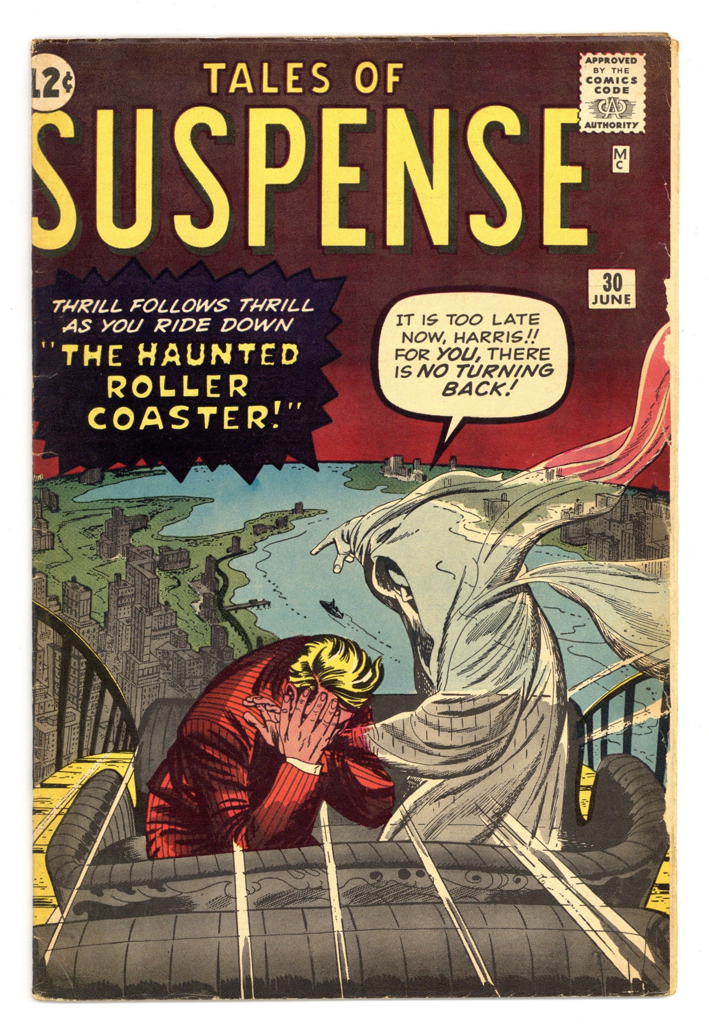 Cover pencils by Jack Kirby, inks by Dick Ayers. "The Ghost Rode a Roller Coaster!", pencils by Jack Kirby, inks by Dick Ayers; An amusement park owner hires an engineer to design frightening rides and works him to death; The engineer's ghost returns and takes the park owner on a deadly roller coaster ride. "Trouble Bubble" text story, art by Joe Maneely. "The Creature from Krangro," pencils by Jack Kirby, inks by Dick Ayers; An alien commander is sent to Earth to prove his courage by capturing three humans, but he accidentally takes statues of George Washington, Abraham Lincoln and Teddy Roosevelt. "The Man Who Couldn't Grow Old!", art by Don Heck; An evil duke seeks the secret of eternal youth, and an old man in Egypt turns him into a mummy. "Inside the Fallout Shelter!", script by Stan Lee, art by Steve Ditko; A selfish man builds a bomb shelter only for himself, but when a false alarm panics him he finds himself locked in for a month without a can opener to open his food. 36 pages, full color. Cover price $0.12.