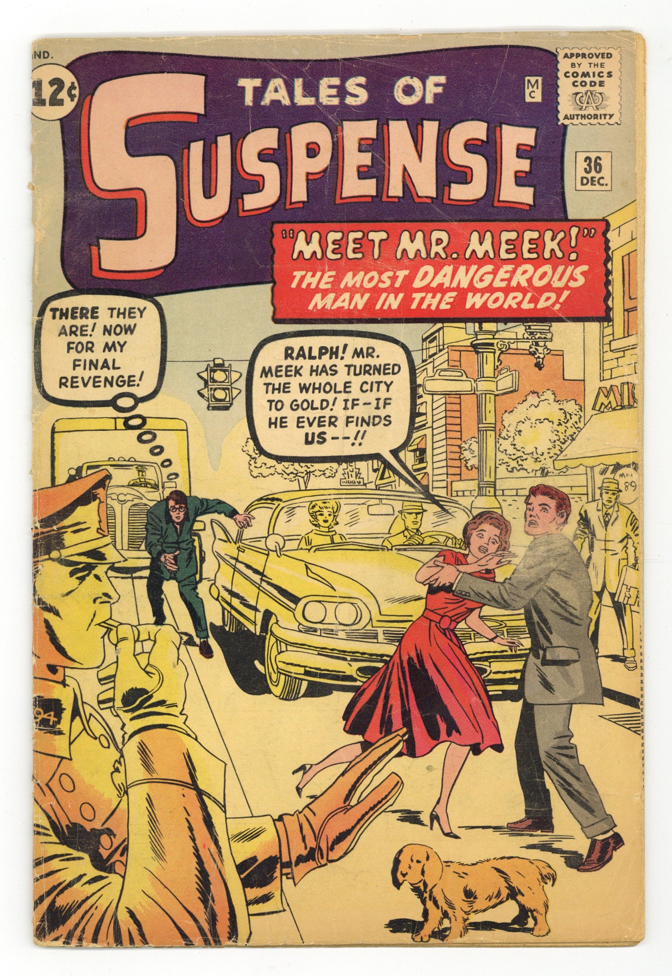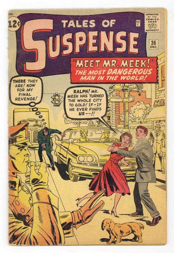 Cover pencils by Jack Kirby. "Meet Mr. Meek! The Most Dangerous Man in the World!", script by Stan Lee (plot) and Larry Lieber (script), art by Don Heck; A formula from an old book seems to give a man an uncontrollable power to turn objects into gold, but his friend figures out that it is actually an alien trick. "The Green Hat" text story. "The Final Weapon," art by Paul Reinman; A billionaire pretends to have invented an ultimate bomb to force the nations of the world to disarm. "The Gorilla from Outer Space!", script by Stan Lee, art by Steve Ditko; A ventriloquist makes it seem that a gorilla is talking, and finds out that the gorilla really is a sentient alien. 36 pages, full color. Cover price $0.12.