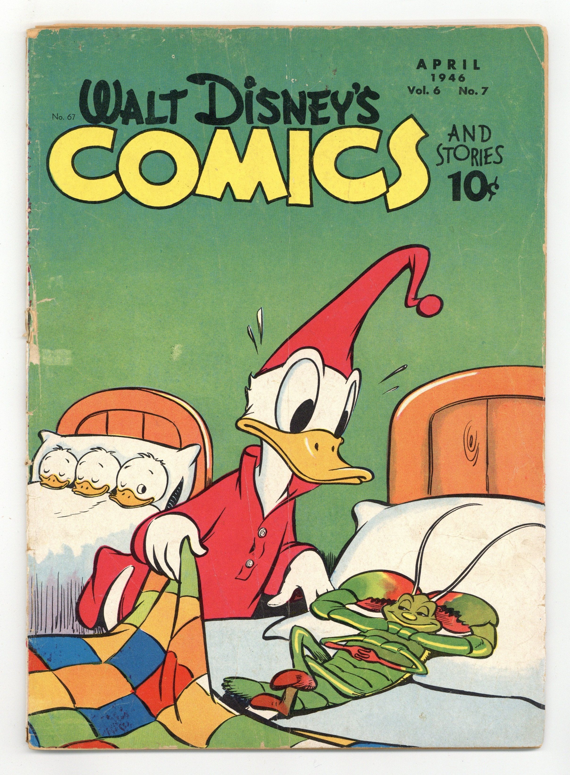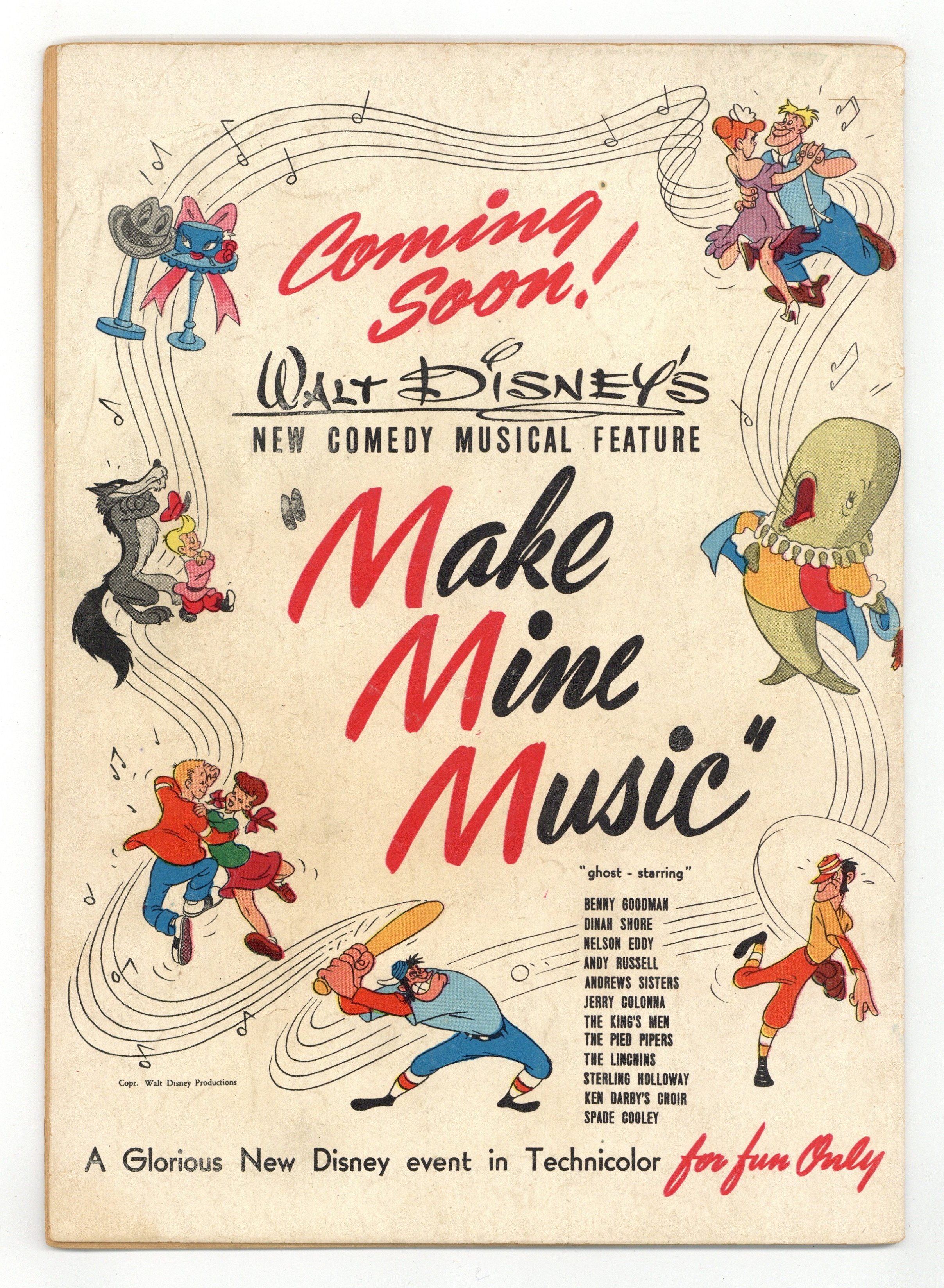 Tags: Disney Ducks & MicePublished Apr 1946 by Dell/Gold Key.$39.50- Lateral spine tear. Cover oxidation. Water spotting.