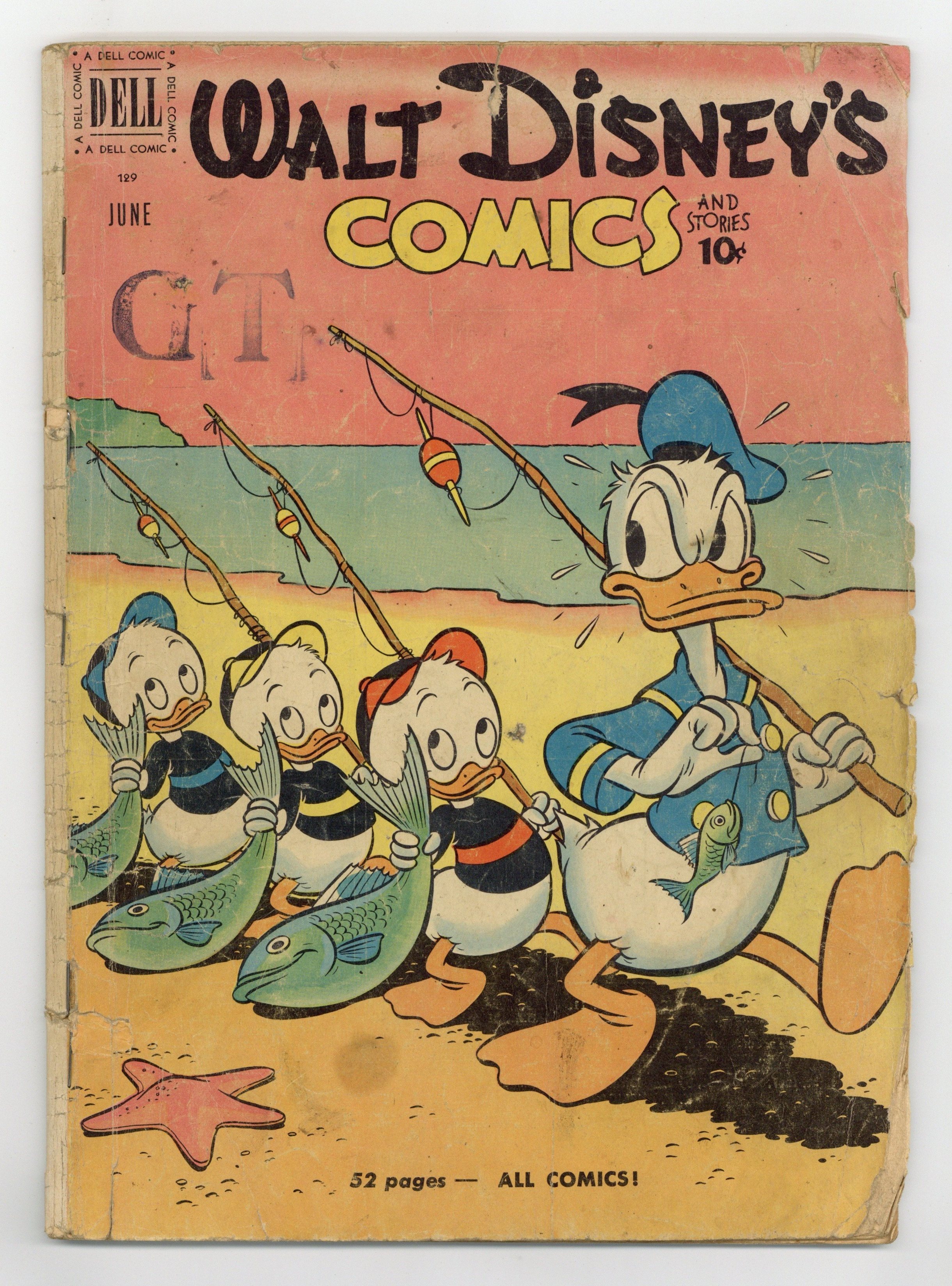 Tags: Disney Ducks & MicePublished Jun 1951 by Dell/Gold Key.$9.20- Cover to cover puncture holes. Staples added (not manufacturing). Cover oxidation.