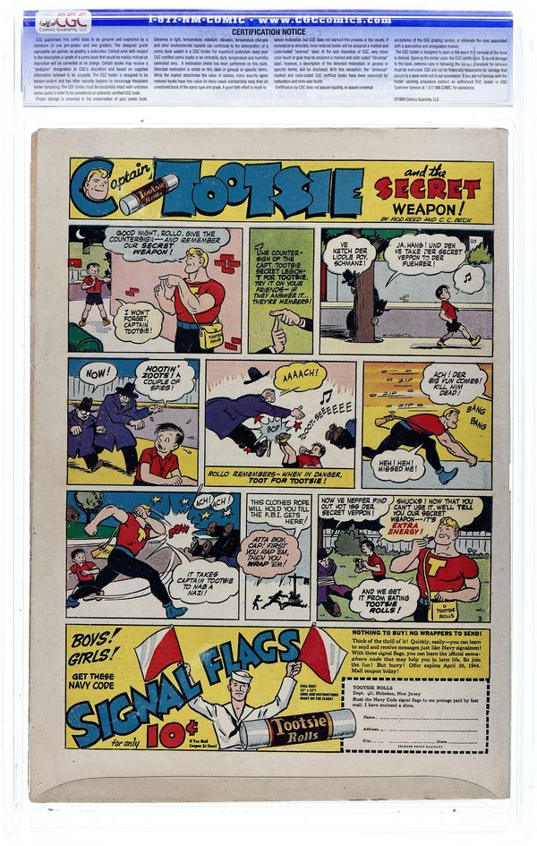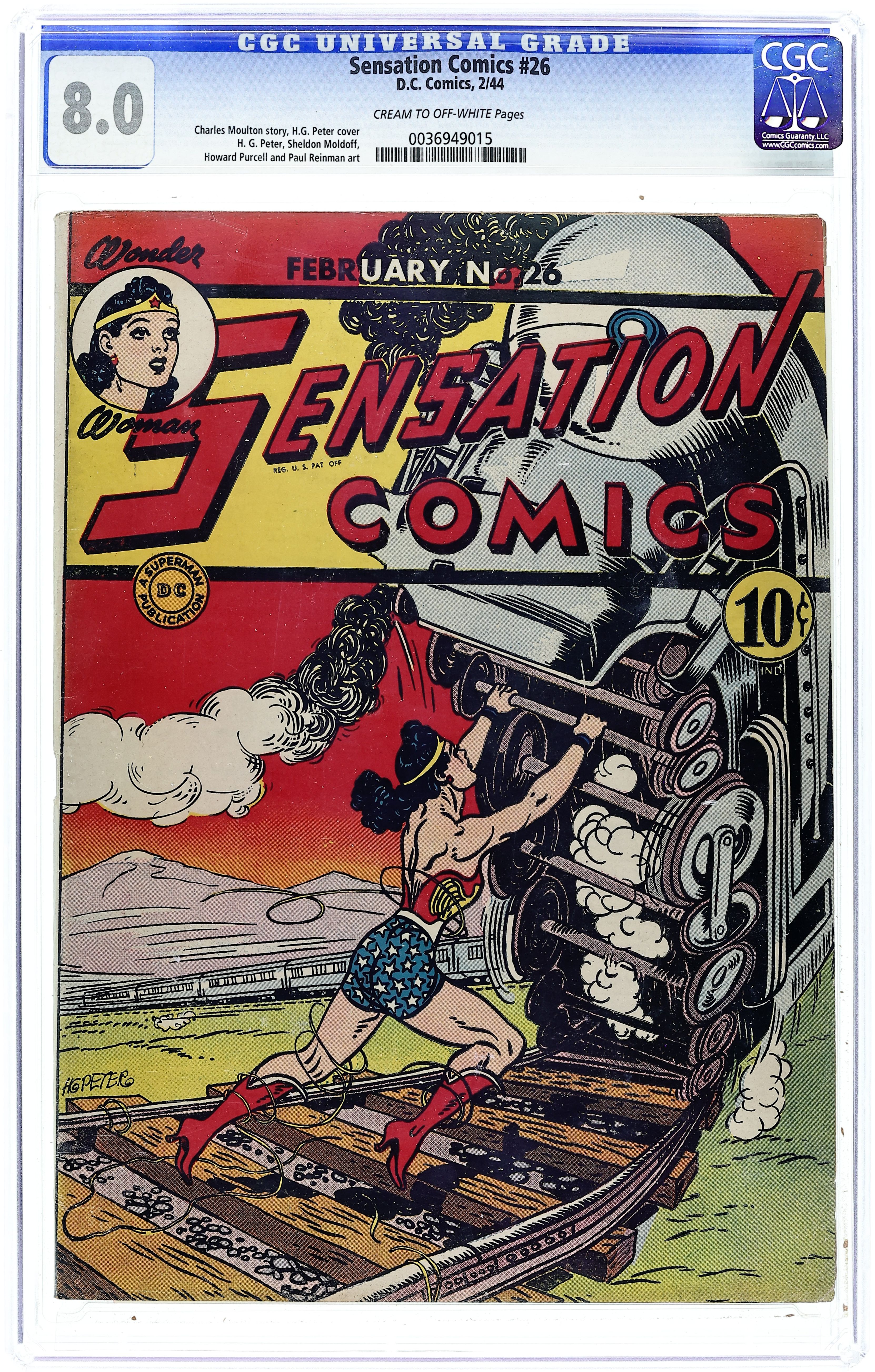 Cover art by Harry G. Peter. Wonder Woman story, script by William Moulton Marston, art by Harry G. Peter; Hippolyte masquerades as Wonder Woman. The Sword of Genghis Khan starring Black Pirate, art by Sheldon Moldoff. The Beggar Boy starring Little Boy Blue and the Blue Boys, script by Evelyn Gaines, art by Frank Harry. The Gay Ghost story, art by Howard Purcell. The Puzzling Portraits starring Mr Terrific, art by Stan Aschmeier. The Rise of BigFist Conlon starring Wildcat, art by Paul Reinman. 60 pgs. $0.10. Cover price $0.10.