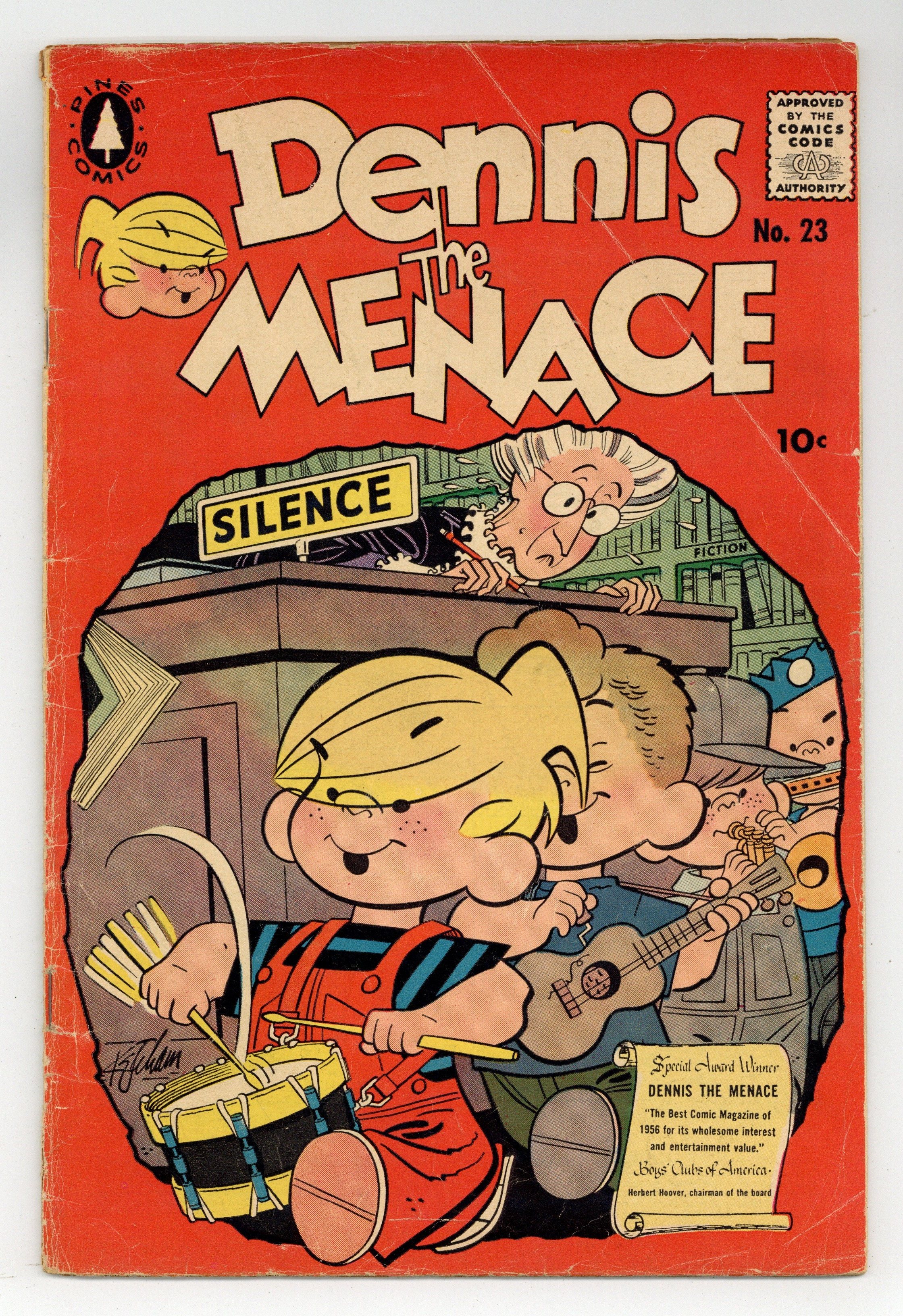 Cover art by Hank Ketcham. Reprints of daily Dennis the Menace cartoons by Hank Ketcham. Dennis the Bookworm, script by Fred Toole, art by Al Wiseman. Meanwhile.... Back at the Ranch... starring Dennis the Menace, script by Fred Toole, art by Al Wiseman. Road Closed text story. Punky, art by Al Wiseman; Punky floats away with some balloons. The Long and Short of It, script by Fred Toole, art by Al Wiseman. The Big Build-Up, script by Fred Toole, art by Al Wiseman. 36 pgs. $0.10. Cover price $0.10.