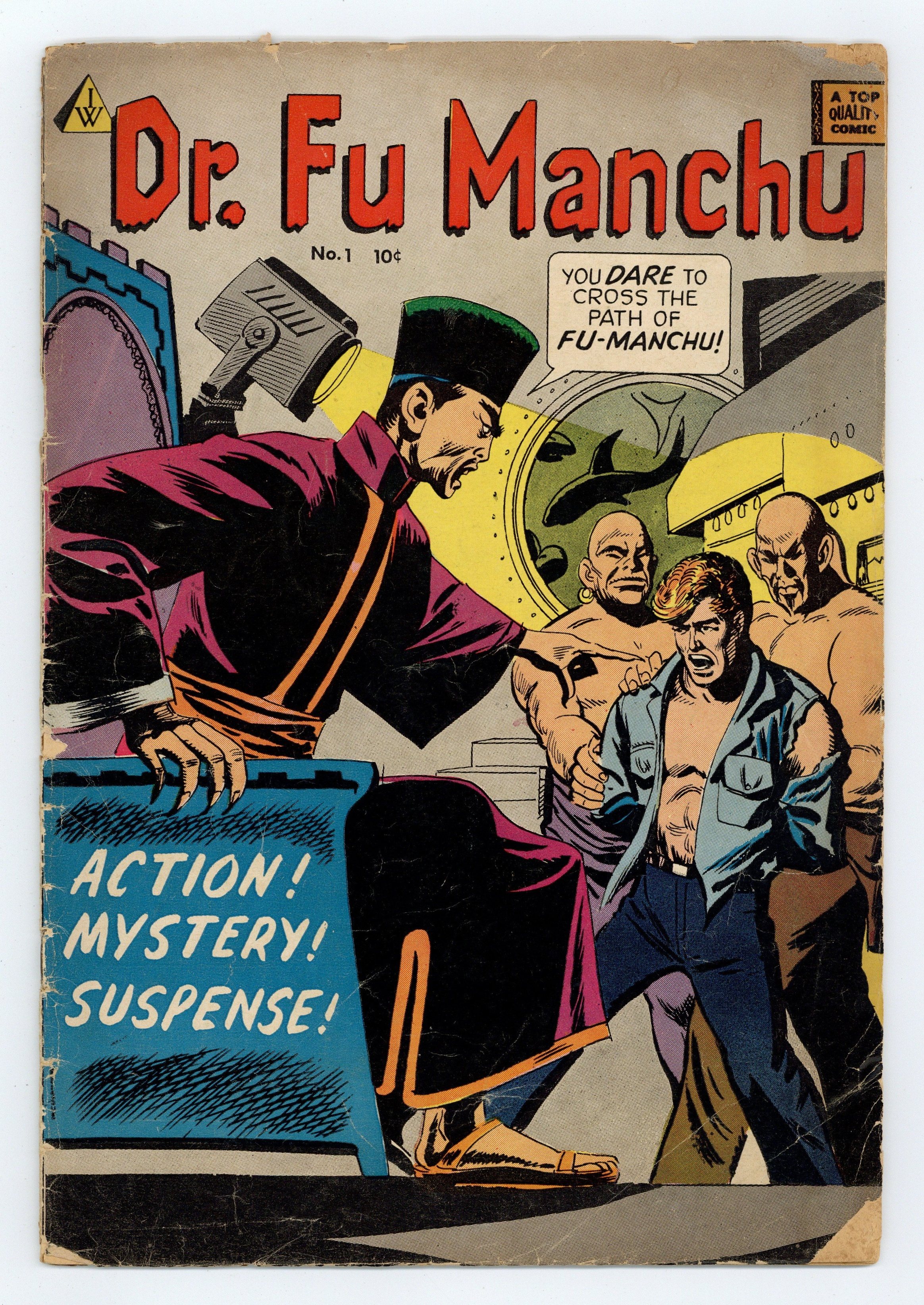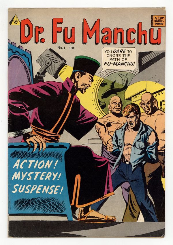 I.W. Reprint -reprints Avon's "Mask of Dr Fu Manchu". Cover art by Carl Burgos. "Dr. Fu Manchu," pencils by Wally Wood and Joe Orlando, inks by Wally Wood; Sir Denis Nayland Smith tried to defeat Dr. Fu Manchu. "Operation Blackout," art by Alvin C. Hollingsworth; Flash Harper, newspaper photographer, captures an arsonist in action in a photo. 36 pgs., full color. Cover price $0.10.