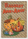 Cover by George Kerr. Stories and art by Walt Kelly, George Kerr (credited as Johnny Gruelle), W.J. Enright, Leroy Crumley and Dan Noonan. Johnny Gruelle's famous doll characters have adventures and learn lessons, featuring early art from Walt Kelly. Legendary Pogo artist Walt Kelly adapts Mother Goose nursery rhymes, including Solomon Grundy, Pancake Day, and Birds of a Feather. In another Kelly story, Owl gets Chippie to help play a trick on a pesky blue jay. Raggedy Ann and Andy try to free The People of the Painted Pinnacles from the cave of the Loonies. Plus activity pages and "nonesuch" animals. Baby Boy Robin; Raggedy Ann; Chippie; The Raggedy Way; Egbert Elephant and His Friends; Animal Mother Goose; A Sausage Has 2 Ends, This Story Has None; The Flying Ship; Billy and Bonny Bee; Predicament. 48 pages, Full Color. Cover price $0.10.