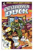 $20.00"Special Lawsuit Benefit Edition." At the height of their legal battles with Marvel, Steve Gerber and Jack Kirby teamed up for this benefit comic, in which a gun-slinging duck seeks revenge against an evil megacorporation. Art and stories donated by Mark Evanier, Dan Spiegle, Scott Shaw!, Alfredo Alcala, Steve Leialoha, Shary Flenniken, Martin Pasko, and Joe Staton. All this plus the first-ever appearance of Sergio Aragones' Groo the Wanderer. Full color; 36 pages. Cover by Kirby and Neal Adams! Cover price $1.50.
