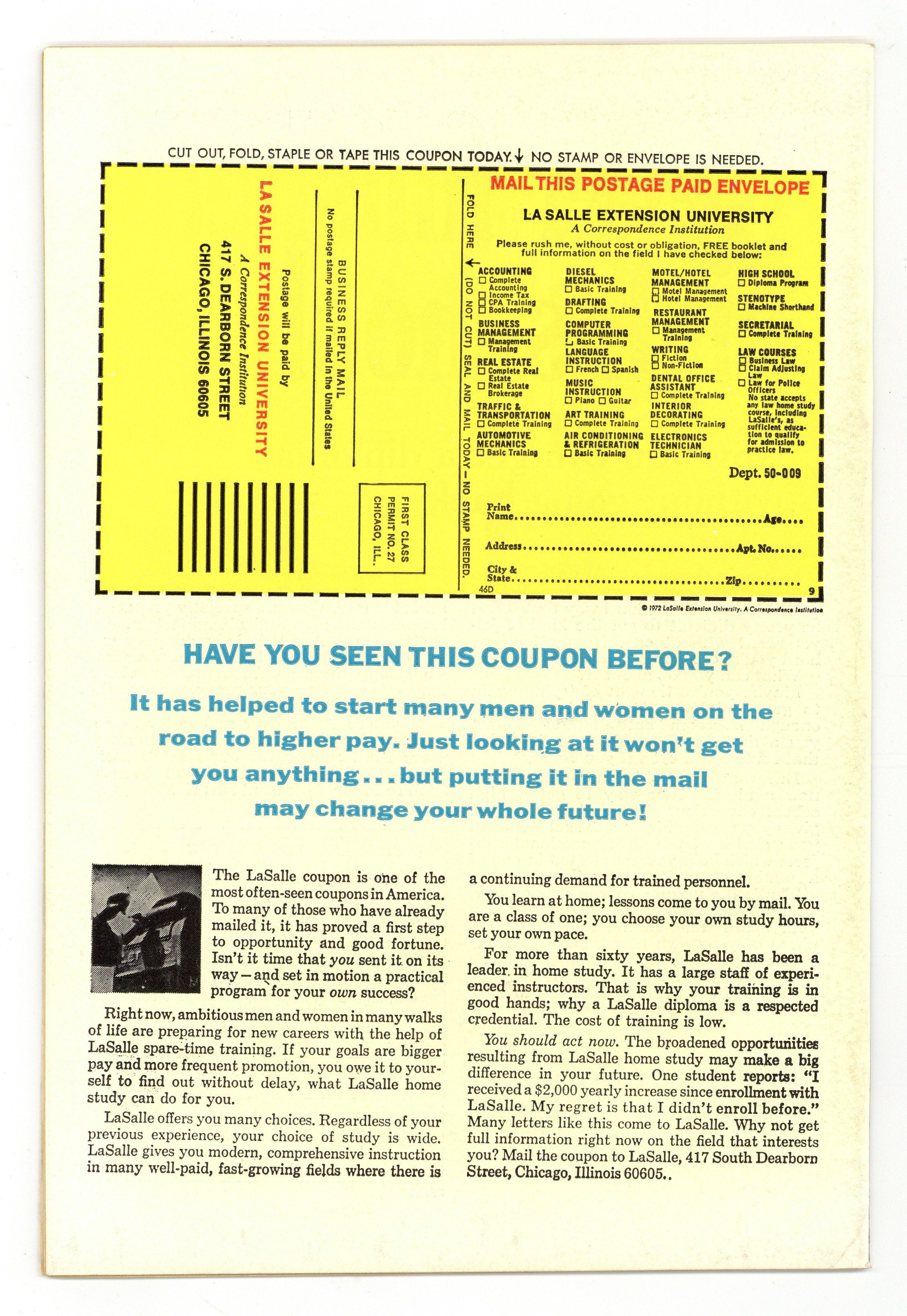 Starts Dec 15 "Trapped in Outer Space!" Part 3 of 3. Script by Steve Englehart. Pencils by Bob Brown. Inks by Mike Esposito. Cover by Gil Kane and John Romita. Mere seconds ago Earth's Mightiest Heroes invaded Cornelius Van Lunt's New Jersey warehouse! But little did they realize the warehouse was actually a spaceship! And now five avengers and seven renegade zodiac are rocketing into outer space! Will the Avengers find their destiny written in the stars? Hopefully not like this! Fortunately though, another rebellious zodiac member, Libra, steals Taurus' star-cruiser and rescues both the heroes and the villains! And that sets the stage for one last free-for-all between the Avengers and the Zodiac! Can Thor, Shell-Head, T'Challa, Mantis, Wanda, and the Vision finally knock down the twelve houses of the Zodiac? Last 20¢ issue. (Notes: The cover to Avengers 122 is widely considered one of Gil Kane's best for Marvel. The Avengers on the cover are busting through pages from issue 120. The letters page contains a letter from comics artist Rick Hoberg. The letters page also contains Marvel Value Stamp Series A #81 The Vision by John Buscema.) 36 pages Cover price $0.20.