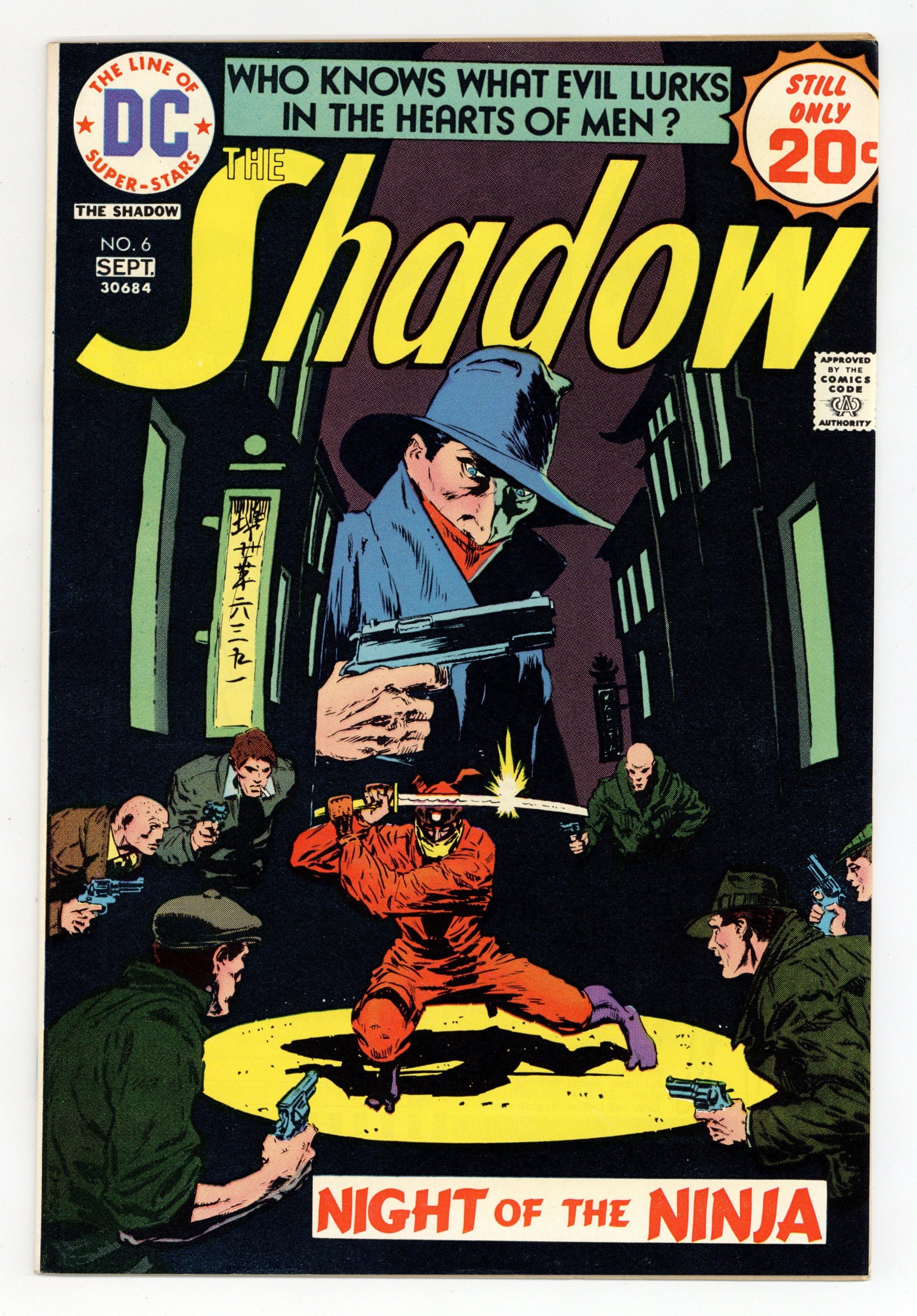 "Night of the Ninja." The Shadow must thwart a ninja assassin in Chinatown. Includes letter by artist Ken Meyer Jr. Script by Denny O'Neil, art by Michael Kaluta. Cover by Kaluta. Cover price $0.20.