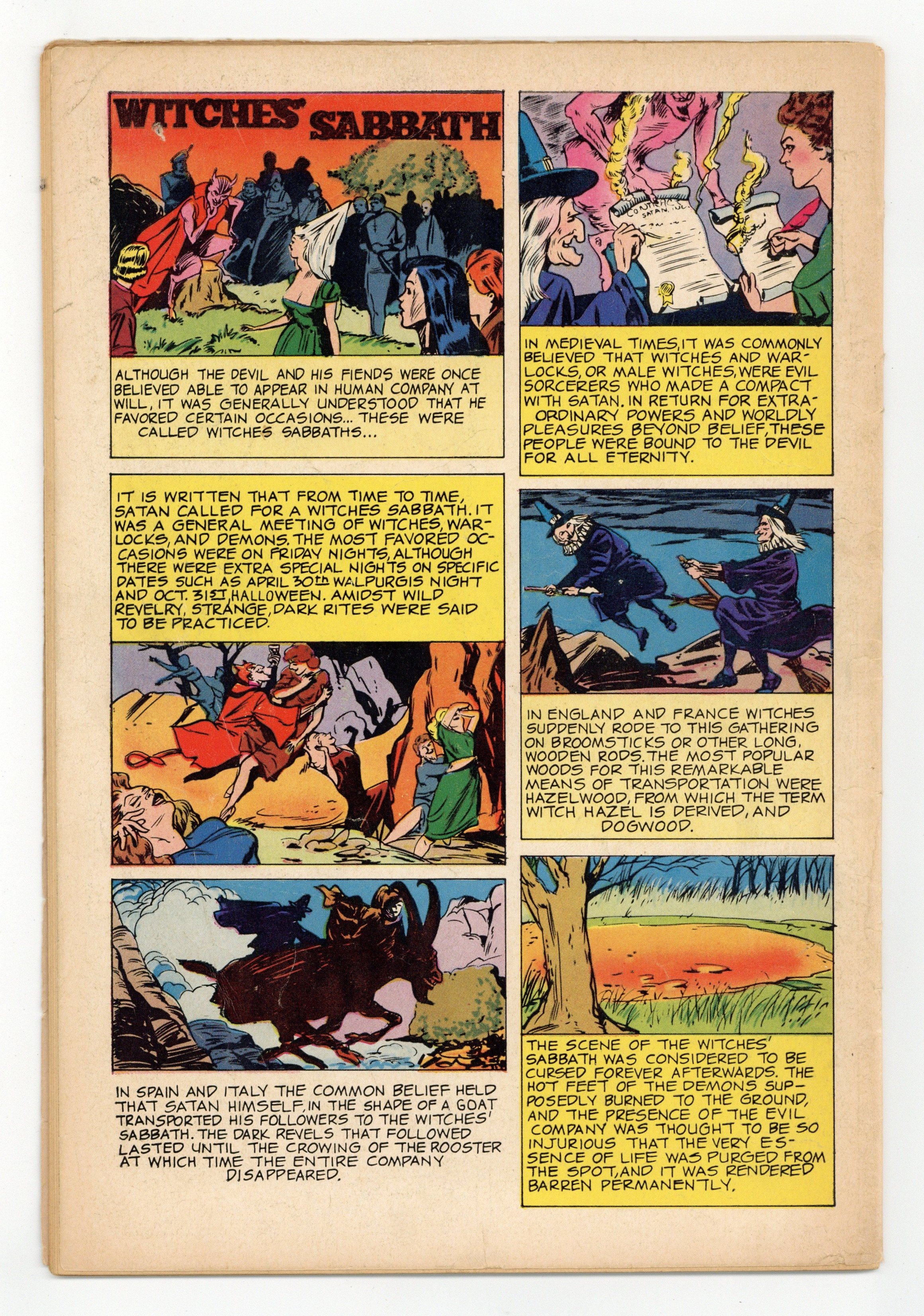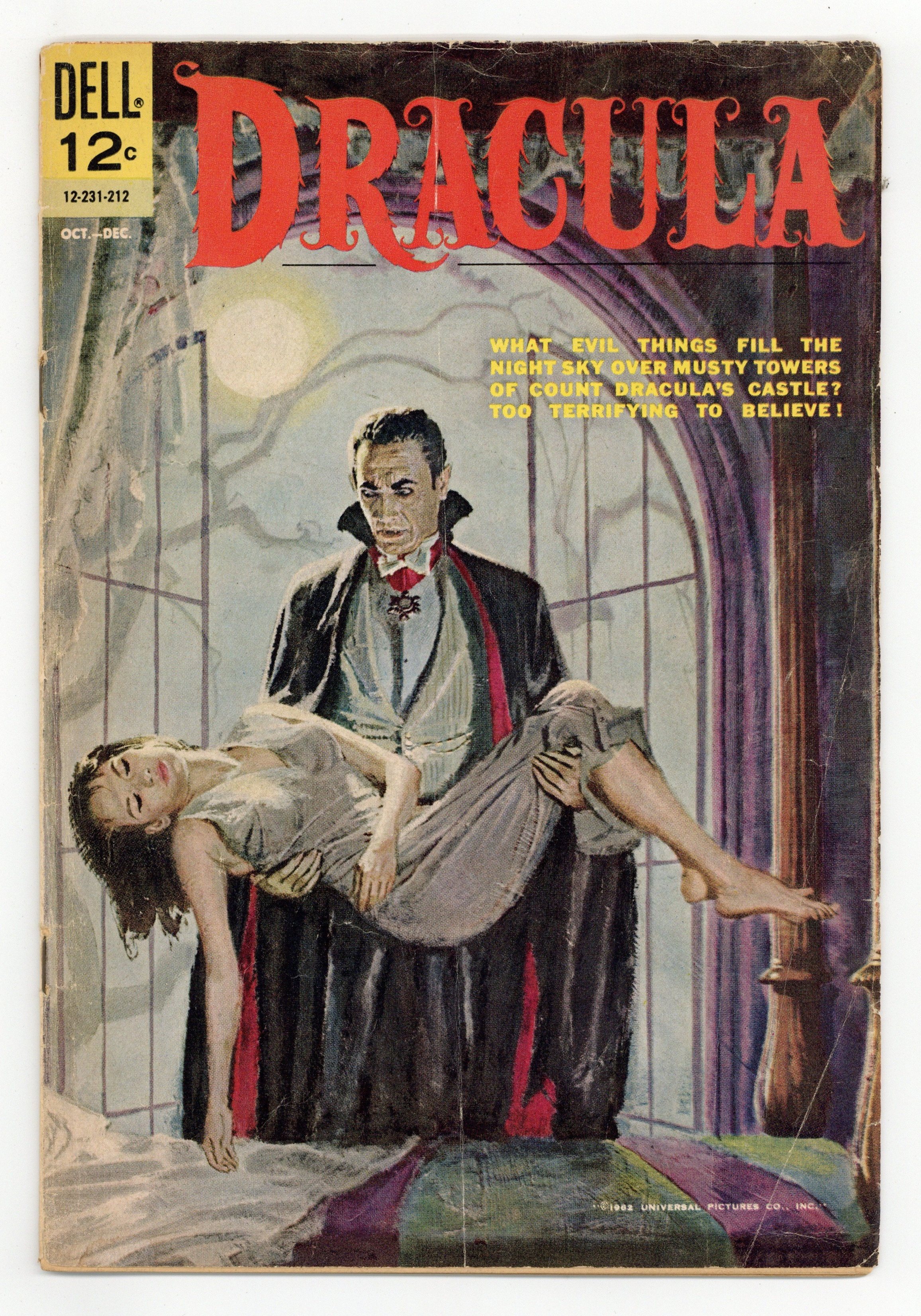Stories and art by Max Elkan and Don Segall. Tales of horror from Dell, inspired by the classic Universal Monster Dracula. Sir Basil seeks the help of Professor Janos Tesla after Basil's son dies mysteriously in Transylvania. Basil wants to find the beautiful Irina, who doesn't cast reflections, but that leads the two men into a confrontation with the Prince of Vampires himself. Plus a one-pager about the Russian sirens called Rusalki. Impressive painted cover by an unknown artist. The Rusalki: Water Maidens of Doom; The Vampires Curse; The Hunters of the Forest; Witches Sabbath. 32 pages, Full Color. Cover price $0.12.