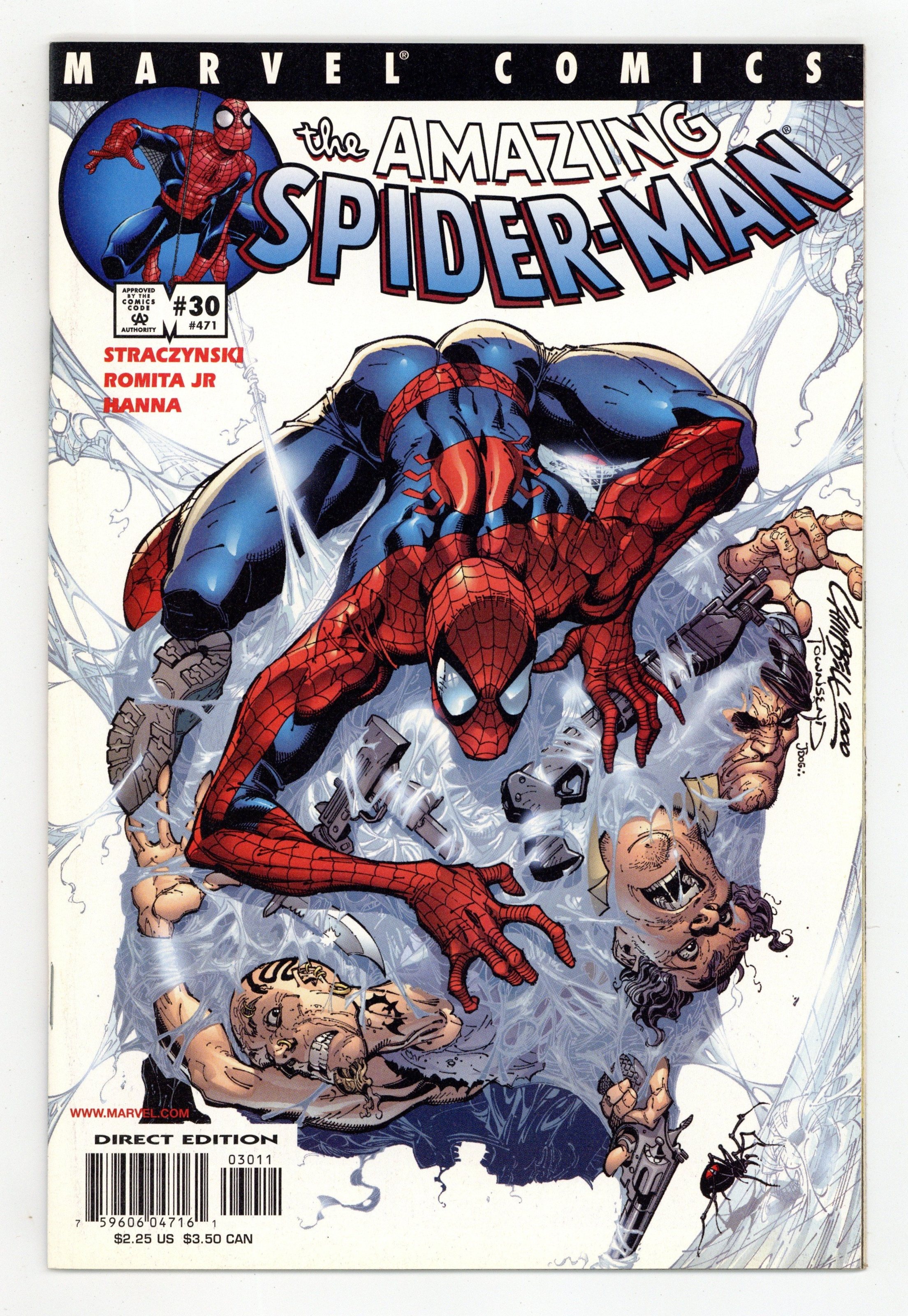 Tags: Marvel Legacy Numbering: Amazing Spider-Man (part 471), Spider-Man$30.00Cover by J. Scott Campbell. Story by J. Michael Straczynski, art by John Romita Jr. THE SCOOP: A new era unfolds as acclaimed writer J. Michael Straczynski takes the reins of Marvel's flagship character! THE STORY: As Peter Parker gets back into the swing of his life, a sudden encounter with an enigmatic stranger will forever change the way he will look at himself? And his alter ego, the ever-amazing Spider-Man. THE CREATORS: He's launched two hits with Rising Stars and Midnight Nation, and now Straczynski teams up with penciler John Romita Jr. to form the Spidey dream team supreme! And can you believe we have none other than J. Scott Campbell on covers? THE FORMAT: 36 pages, full color, with ads. Cover price $2.25.