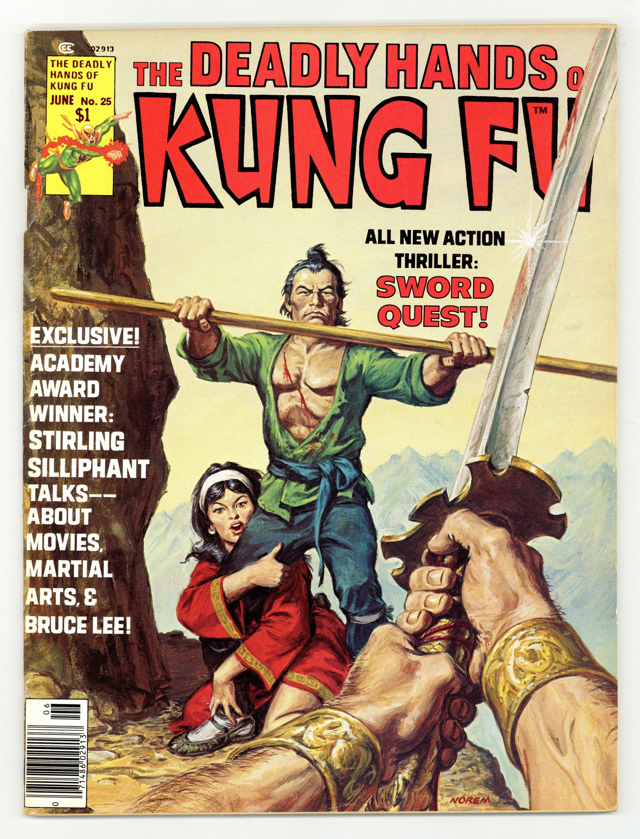 Stan Lee Presents: The Deadly Hands of Kung Fu. Cover by Earl Norem. Includes: "Enter the Letters!" A letters page with readers' thoughts on previous issues. An editorial by Archie Goodwin. "Samurai!" Story by Bill Mantlo. Art by Pat Broderick. "Fighting Arts Reviewed!" A column by David Kraft. "New Meanings of Aggression!" An interview with Stirling Silliphant by Jim Whitmore. "Before the Quest!" An introduction to Swordquest by John David Warner. Plus, "Swordquest: Destiny Cross-Swords!" Part 1. Story by John Warner. Art by Sanho Kim. Black and white. Cover price $1.00.