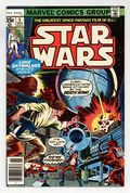Tags: Star Wars A New Hope (part 5), Star Wars$16.251st printing, standard 35 Cent Newsstand Edition with UPC. A New Hope: Part 5 of 6. "Lo, the Moons of Yavin!" Based on the screenplay by George Lucas. Adapted by Roy Thomas. Art by Howard Chaykin and Steve Leialoha. Luke does not have long to mourn the loss of Ben Kenobi as the Millennium Falcon is attacked from all sides by deadly Tie-Fighters. Even if these Rebel heroes do survive this latest attack, the Empire knows the location of the Rebel's secret headquarters. They don't have long before the Death Star, a space station with the power to destroy planets, delivers the killing blow to the rebellion once and for all. Cover price $0.35.