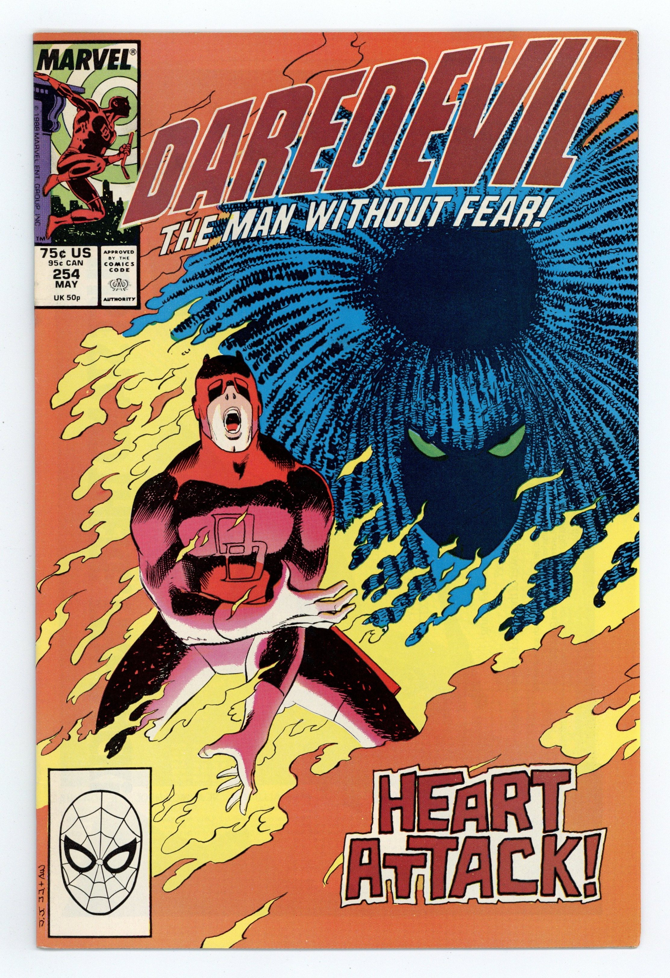 Tags: Marvel Legacy Numbering: Daredevil (part 254), Daredevil$25.00Direct Edition. Cover pencils by John Romita, Jr., inks by Al Williamson. First appearance of Typhoid Mary in Typhoid!, script by Ann Nocenti, pencils by John Romita Jr., inks by Al Williamson; Typhoid Mary blows into town and starts robbing the Kingpin's operations; Thinking he has finally found a way to get to Daredevil, Kingpin offers Typhoid a million dollars if she can make DD fall in love with her and then crush him; Matt meets Mary. 32 pgs. Cover price $0.75. Cover price $0.75.