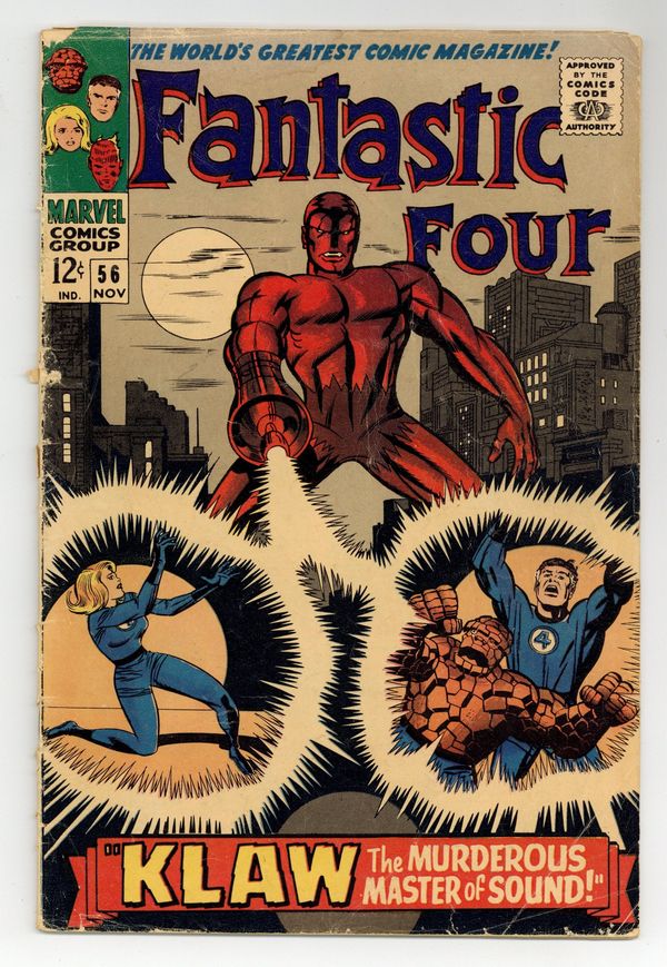 Ends Mar 9 8:01 PM CST Bid History 5 bids Current Bid $22 Your Secret Max Bid If you'd like to bid, please log in or register. Cover pencils by Jack Kirby, inks by Joe Sinnott. Klaw The Murderous Master of Sound!, script by Stan Lee, pencils by Jack Kirby, inks by Joe Sinnott; Klaw attacks the Baxter Building. The Silver Surfer, the Inhumans, Doctor Doom, and the Black Panther all have brief appearances. 36 pgs. $0.12. Cover price $0.12.