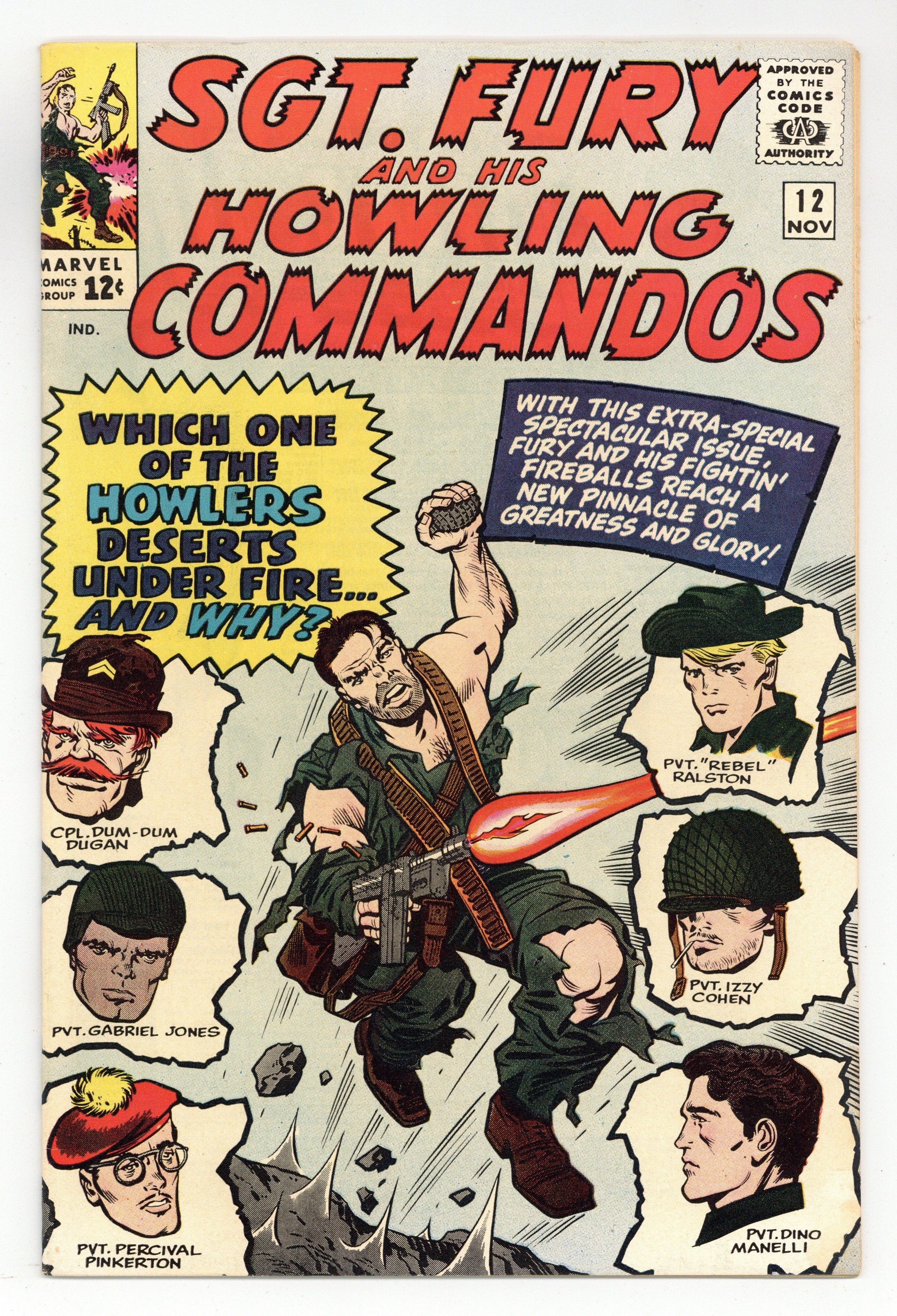 Cover pencils by Jack Kirby, inks by Chic Stone. When A Howler Turns Traitor, script by Stan Lee, pencils by Dick Ayers, inks by George Roussos; one of the Howlers deserts the men, who battle Josef Goebbels. 36 pgs. $0.12. Cover price $0.12.
