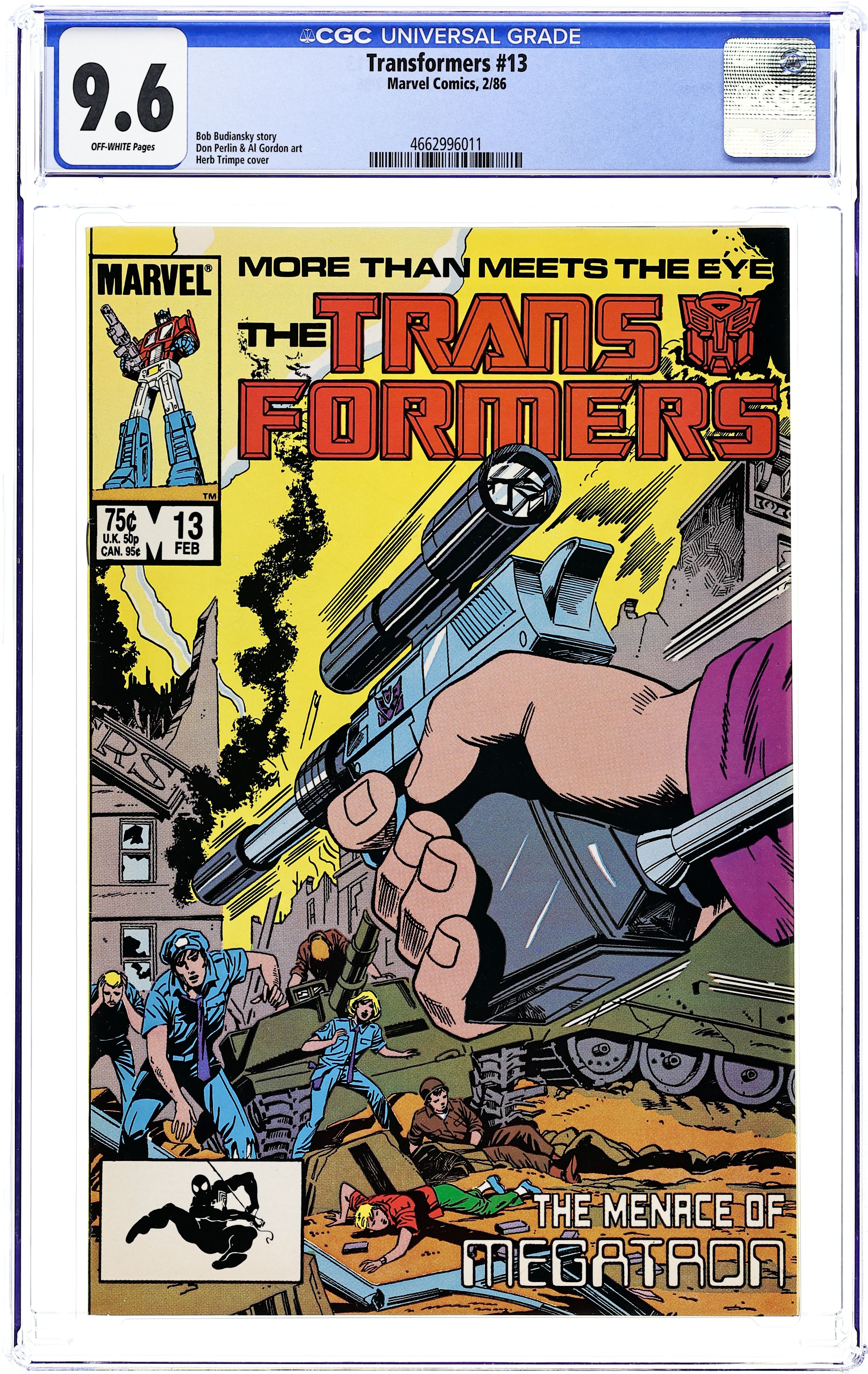 This issue has a Transformers tale from a different viewpoint as loser and gambler Joey Slick stumbles across a very strange gun while running from some gangsters trying to collect on Slick's gambling debts. But the gun is actually Megatron in a transformed state and Joey uses Megatron to his advantage and fixes a few things in his miserable life in "Shooting Star." Script by Bob Budiansky and art by Don Perlin & Al Gordon. Cover price $0.75.