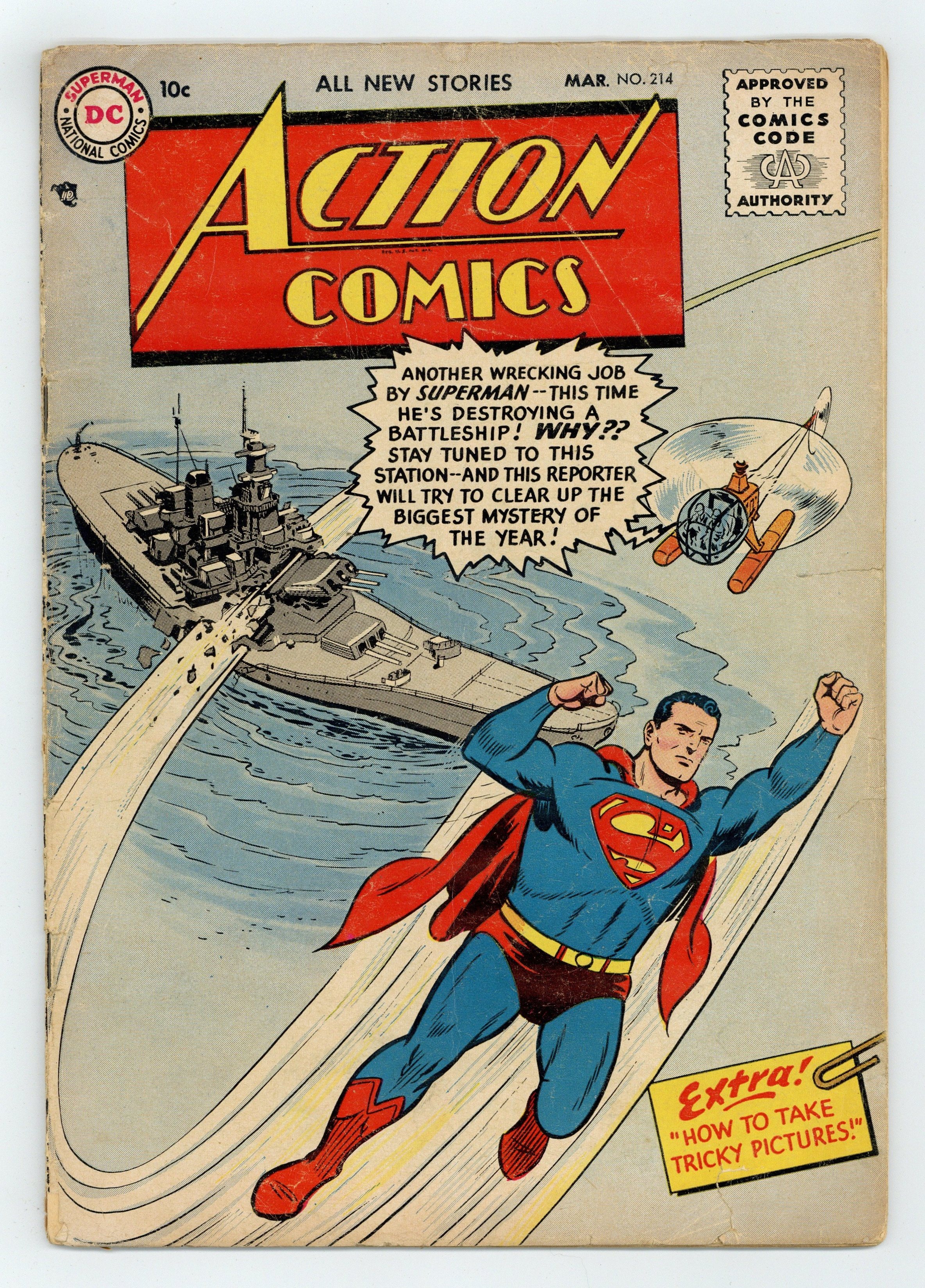 Cover by Al Plastino. "Superman, Super-Destroyer," art by Al Plastino; An eccentric millionaire gets Superman to destroy buildings and a battleship, which seems wanton destruction to a world which does not know he is preventing aliens from using them as weapons against Earth. "The Invincible Idol" starring Congo Bill, art by Ed Smalle. "The Most Wanted Man In Space" starring Tommy Tomorrow, script by Otto Binder, art by Jim Mooney. 36 Pages, Full Color. $.10 Cover price $0.10.