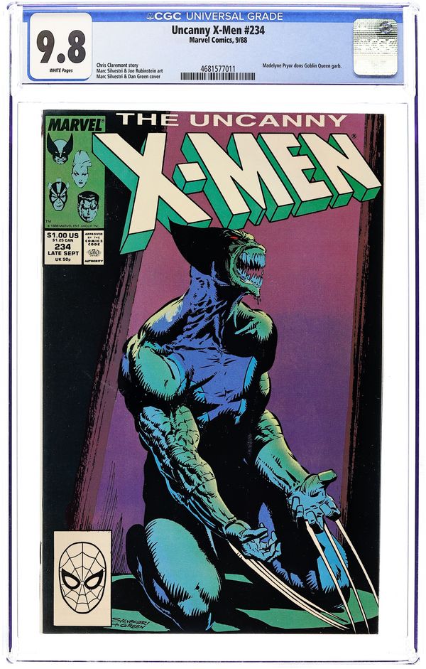 Direct Edition. "Glory Day!" Part 3 of 3. Story by Chris Claremont. Art by Marc Silvestri and Joe Rubinstein. Cover by Marc Silvestri and Dan Green. Don't miss the cataclysmic conclusion to the epic Brood storyline. If the X-Men fall, mankind is doomed! Meanwhile, Madelyne Pryor embraces her dark destiny. 36 pgs. Cover price $1.00.