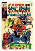 Tags: Marvel Legacy Numbering: Captain America (part 116), Captain America$51.00First 15-cent cover price. Cover pencils by Gene Colan, inks by Joe Sinnott. The Red Skull is still in Cap's body in "Far Worse Than Death!", script by Stan Lee, pencils by Gene Colan, inks by Joe Sinnott; Red Skull transports Captain America outside a government testing lab, wheres hes shot at; Red Skull is disgusted that people admire him since they think he is Captain America, wondering why he doesnt lord it over the people who worship him; Cap, in the Red Skulls body, gets in a high speed chase with the police and then battles the Avengers; The Red Skull uses the Cosmic Cube make Sharon Carter try to kill Captain America. The Black Panther appears on the cover but is not in the story. The Black Panther appears on the cover but is not in the story. 36 pgs., full color. $0.15. Cover price $0.15.
