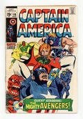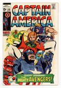 Tags: Marvel Legacy Numbering: Captain America (part 116), Captain America$38.50First 15-cent cover price. Cover pencils by Gene Colan, inks by Joe Sinnott. The Red Skull is still in Cap's body in "Far Worse Than Death!", script by Stan Lee, pencils by Gene Colan, inks by Joe Sinnott; Red Skull transports Captain America outside a government testing lab, wheres hes shot at; Red Skull is disgusted that people admire him since they think he is Captain America, wondering why he doesnt lord it over the people who worship him; Cap, in the Red Skulls body, gets in a high speed chase with the police and then battles the Avengers; The Red Skull uses the Cosmic Cube make Sharon Carter try to kill Captain America. The Black Panther appears on the cover but is not in the story. The Black Panther appears on the cover but is not in the story. 36 pgs., full color. $0.15. Cover price $0.15.