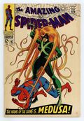 Tags: Marvel Legacy Numbering: Amazing Spider-Man (part 62), Spider-Man$85.00"Make Way for Medusa!" Guest-starring Medusa. Script by Stan Lee. Art by John Romita (layouts) and Don Heck (pencils). Inks by Mike Esposito (as Mickey Demeo). Cover by John Romita. The inhuman with the living red hair comes to New York City! Medusa is on a mission from Black Bolt to see how regular everyday people might relate to the Inhumans -- if they choose to rejoin society someday. Unfortunately, one of the first persons Madame Medusa meets...is the CEO of a hair spray company! The duplicitous executive tricks Spider-Man and Medusa into fighting one another (as shown on the fantastic cover) -- to support his advertising campaign! Eventually, the web-slinger and Medusa realize what's happening...and they turn the tables on the shady CEO. Cameo appearances by Captain Stacy, Gwen Stacy, Mary Jane Watson, J. Jonah Jameson, Norman Osborn, and Harry Osborn. (Notes: Spectacular Spider-Man (1968 Magazine) #1 was also published this month. The letters page includes a letter from Mark Lamberti -- long-time friend of Lone Star Comics. This issue was reprinted in Marvel Tales #45.) 36 pages. Cover price $0.12.