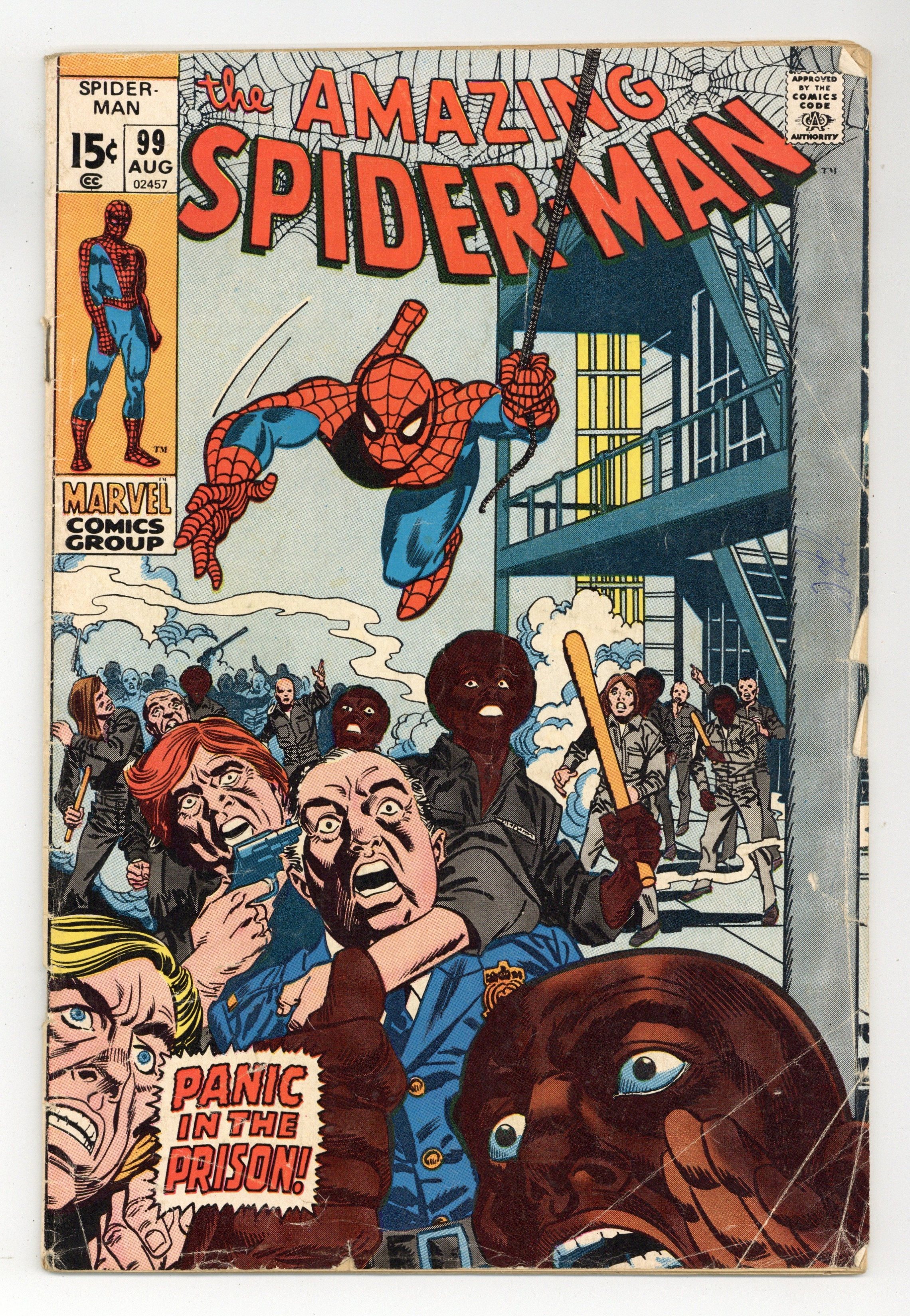 Tags: Marvel Legacy Numbering: Amazing Spider-Man (part 99), Spider-Man$22.50"A Day in the Life Of" Script by Stan Lee. Pencils by Gil Kane. Inks by Frank Giacoia and Tony Mortellaro (backgrounds). Cover by Gil Kane and Frank Giacoia. The wondrous wall-crawler is on cloud nine after Gwen Stacy's return from London. Gwen wants to resume their life together...and so does Peter in a very big way! But the amazing one needs to boost his bank account first. So the Daily Bugle sends him on an assignment to cover a prison riot at the city jail. Once the web-slinger quells the riot (and takes pictures), he surprisingly bumps into the host of the Tonight Show! Is Spider-Man primed for late night? Cameo appearances by J. Jonah Jameson, Joe Robertson, Johnny Carson, and Ed McMahon. (Note: This issue was reprinted in Marvel Tales #80.) 36 pages. Cover price $0.15.