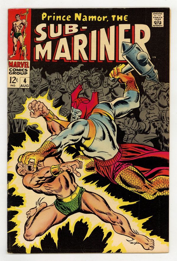"Who Strikes for Atlantis?!" Written by Roy Thomas. Art by John Buscema and Frank Giacoia. The Oceans tremble as the undersea warlord Attuma sieges the Kingdom of Atlantis! 32 pages, FC. Cover price $0.12.