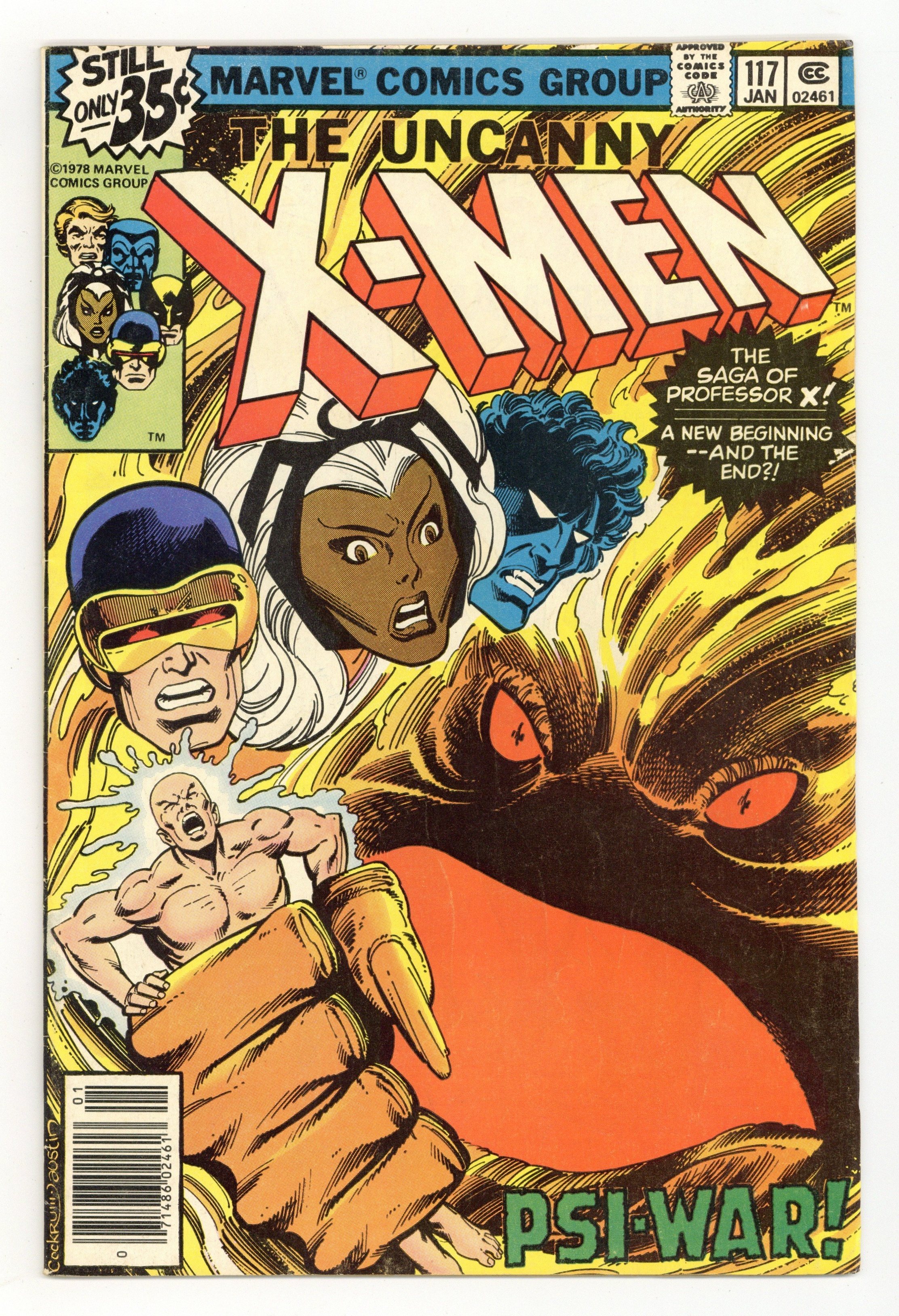 "Psi War!" Misty Knight cameo. Story by Chris Claremont and John Byrne. Art by John Byrne and Terry Austin. It's the origin of Professor Charles Xavier! In a time before the X-Men, Xavier ran into another mutant whose mental abilities rivaled his own. Witness the battle that decided the fate of mutant and mankind for generations to come. NOTE: 1st appearance of the Shadow King. 36 pgs. Cover price $0.35.