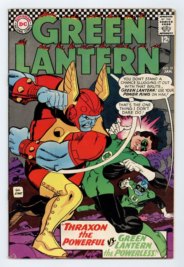Cover art by Gil Kane. The Quest of the Wicked Queen of Hearts, script by John Broome, art by Gil Kane. Thraxton the Powerful Vs Green Lantern The Powerless, script by Gardner Fox, art by Gil Kane; Green Lantern is afraid to use his ring on Thraxton the Powerful. 36 pgs. $0.12. Cover price $0.12.
