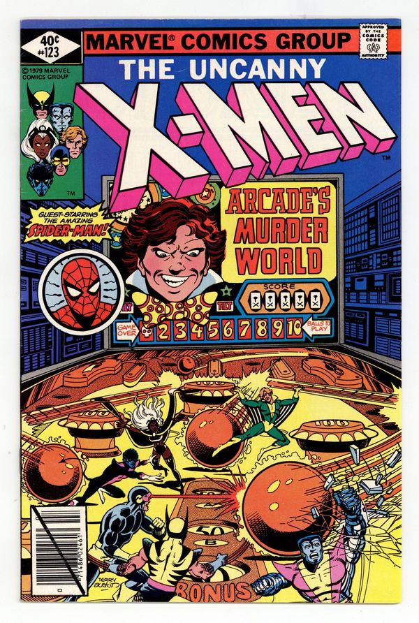 Direct Edition. "Listen - Stop Me if You've Heard It - But this One will Kill You!" Part 1 of 2. Guest-starring Spider-Man and Colleen Wing. Story by Chris Claremont and John Byrne. Art by John Byrne and Terry Austin. Cover by Terry Austin. One by one the X-Men are abducted. Now they must fight for their lives if they hope to survive the sinister creature of the diabolical Arcade - Murder World! NOTE: Uncanny X-Men #123 and #142 are rare commodities in the realm of comics as they are two of the very few covers where inker extraordinaire Terry Austin actually does the pencils as well. - Odinson Lone Star Comics Archivist. 36 pgs. Cover price $0.40.