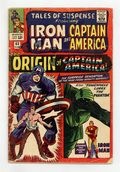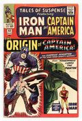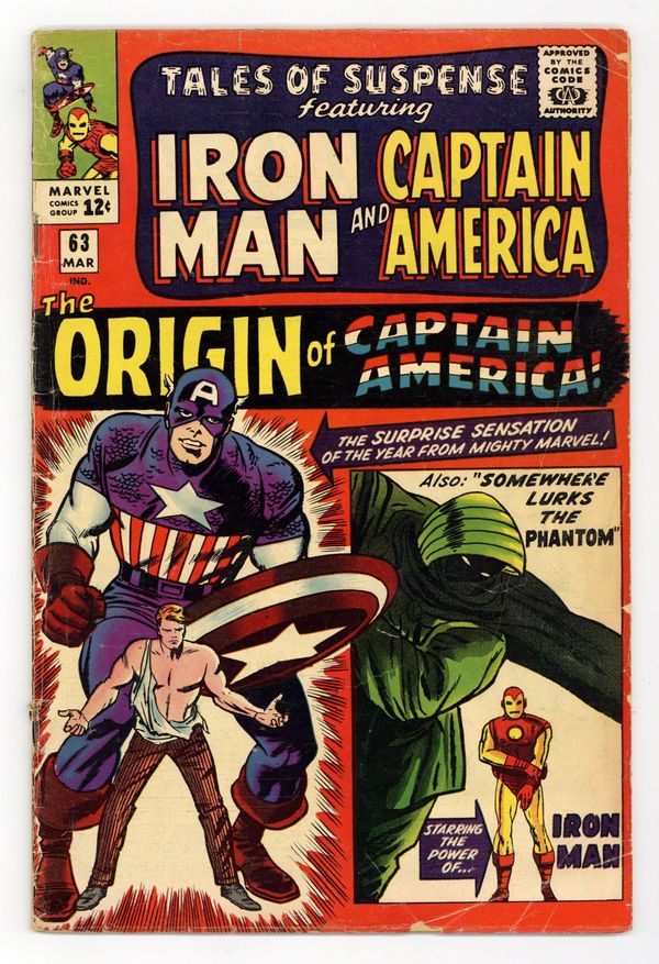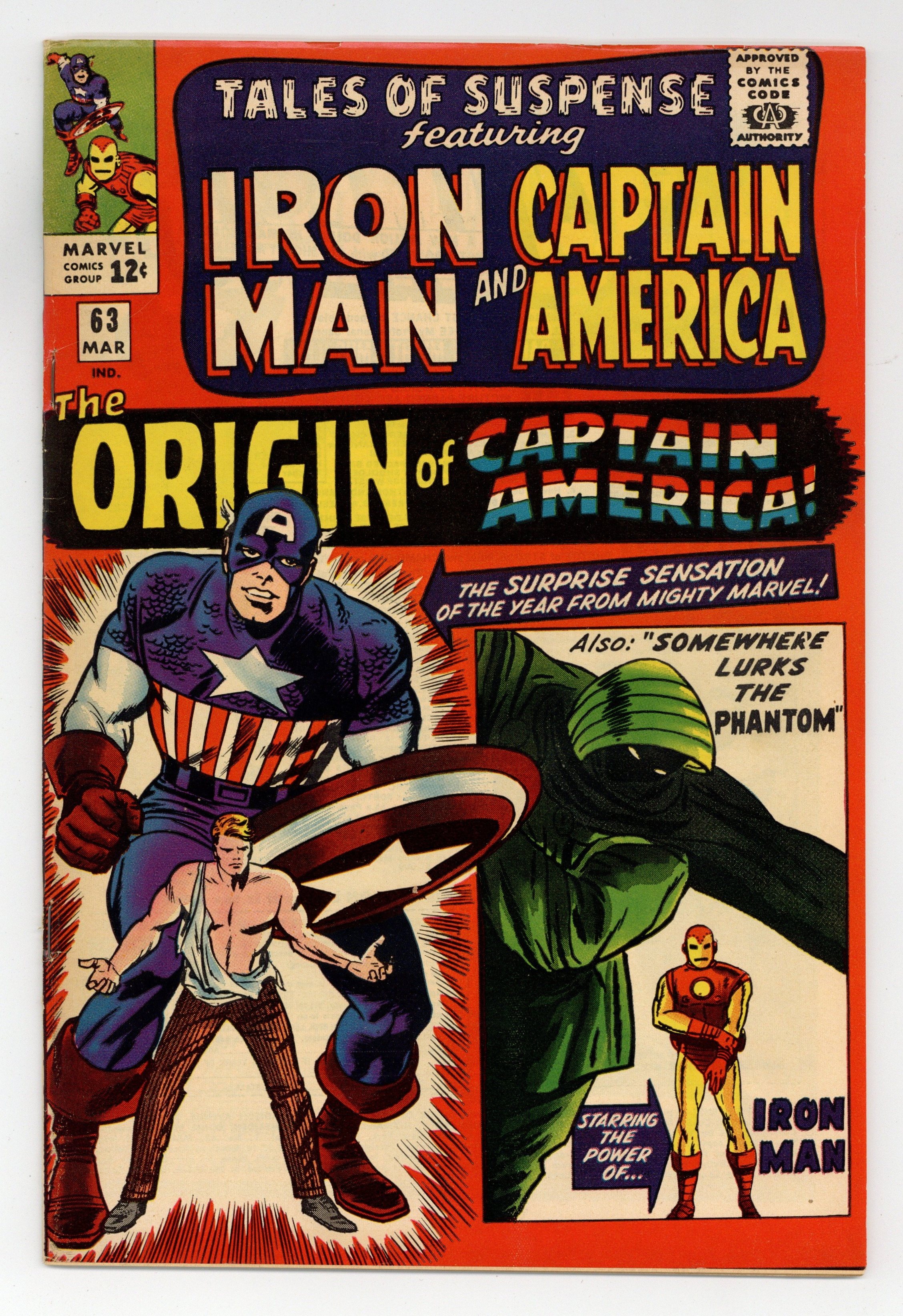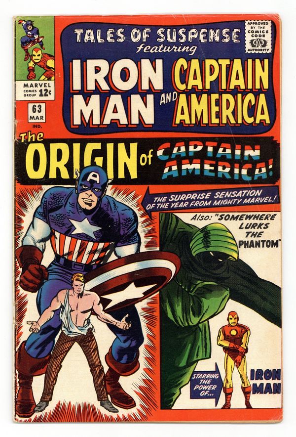 Cover pencils by Jack Kirby (Captain America) and Don Heck (Iron-Man), inks by Sol Brodsky (Captain America) and Dick Ayers (Iron-Man). "Somewhere Lurks the Phantom!", script by Stan Lee, pencils by Don Heck, inks by Dick Ayers; Iron Man stops industrial saboteur the Phantom, who turns out to be one of his employees. Captain America's origin is told for the first time in the Silver Age in "The Origin of Captain America!", script by Stan Lee and Jack Kirby (co-plot), pencils by Jack Kirby, inks by Frank Giacoia (as Frank Ray); While the Nazi war machine marches on, President Roosevelt institutes a top-secret program, "Project Rebirth"; In a secret lab, scientist Dr. Erskine gives army 4F reject and volunteer Steve Rogers the "super-soldier serum," which turns him into a virtual superman; But a Nazi spy who got past security murders Erskine before he can create an army of men like Rogers, and is killed when he runs headlong into some electrical machinery; Rogers becomes the costumed Captain America, as a symbol of freedom; Bucky Barnes appearance; Franklin D. Roosevelt cameo; This is a re-telling of "Meet Captain America" from Captain America Comics #1, March 1941. 36 pages, full color. Cover price $0.12.