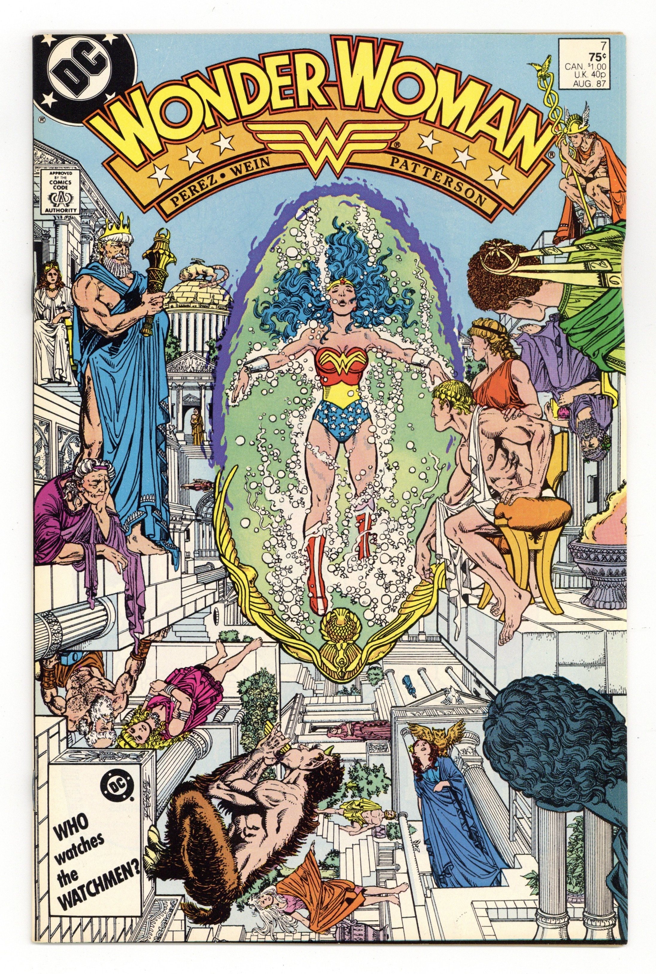 Tags: Wonder Woman$14.00Diana recovers on Paradise Island, Myndi Mayer courts Diana and Professor Kapatelis so she can be Wonder Woman's publicist, and the Cheetah covets a certain golden lasso in "Rebirth!" Script by Len Wein, plot and pencils by George Perez, inks by Bruce Patterson. Perez cover. 36 pgs. Cover price $0.75.
