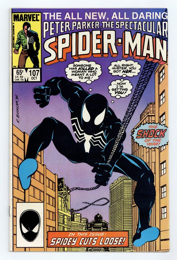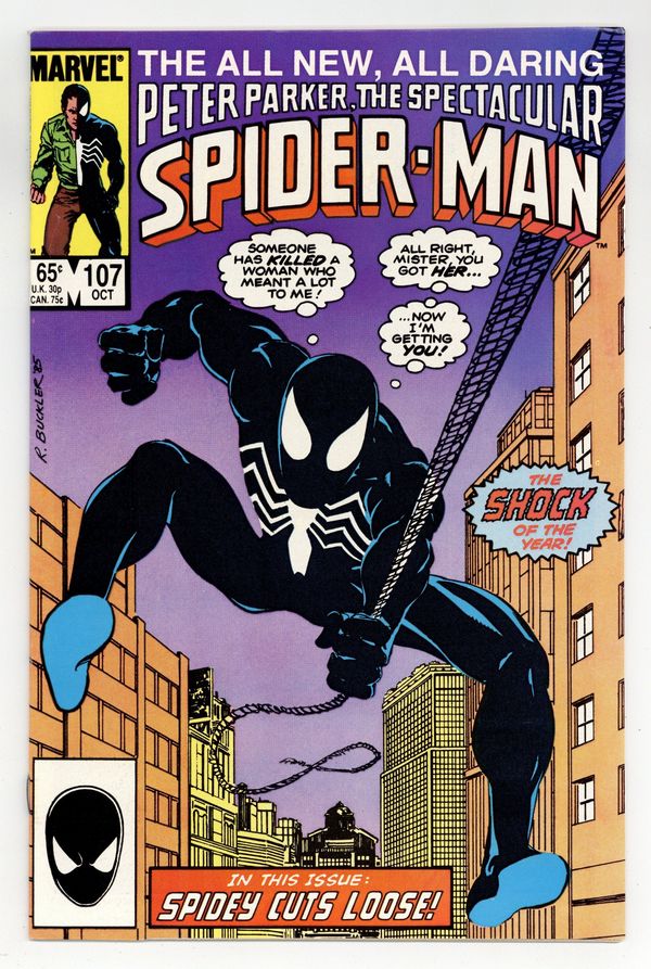 Direct Edition. "Original Sin" Part 1 of 4. Guest-starring Daredevil. Script by Peter David. Pencils by Rich Buckler. Inks by Brett Breeding. Cover by Rich Buckler. The critically acclaimed Death of Jean DeWolff storyline begins with this issue. In a stunning development, police captain Jean DeWolff is found murdered in her apartment. The entire city is in a state of shock over the killing including the police department, the staff at the Daily Bugle, and the Amazing Spider-Man. The web-slinger (in his black costume) begins investigating the homicide by meeting with the detective assigned to the case, Stan Carter. However, another superhero, Daredevil, gets the first shot at stopping the murderous rampage of the Sin-Eater! First appearance of the Sin-Eater. 32 pages Cover price $0.65.