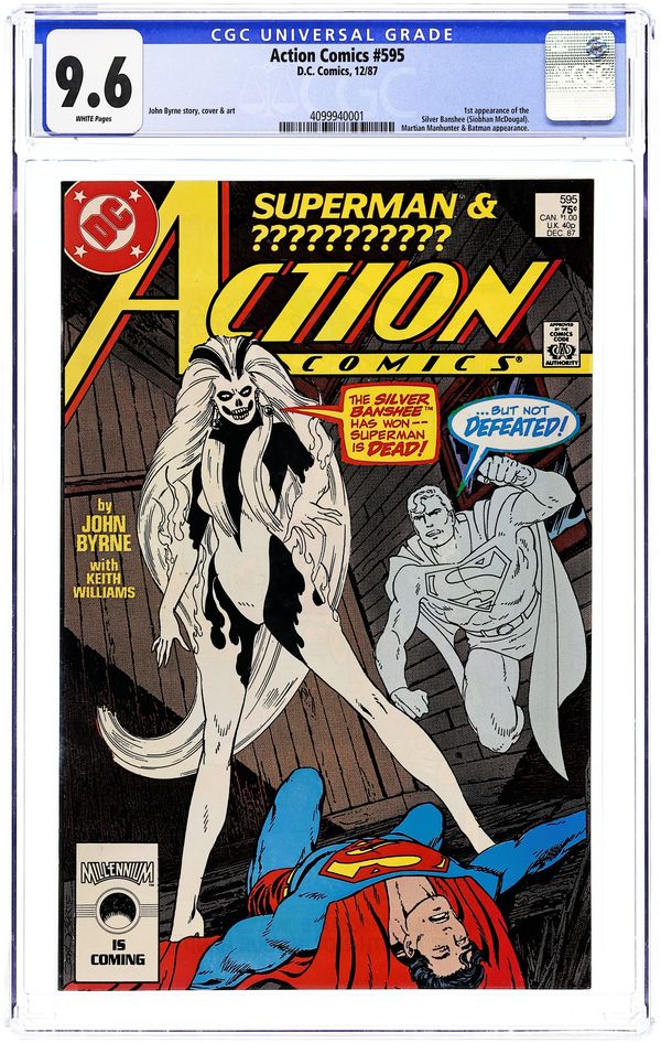 Direct Edition. Cover art by John Byrne. The Ghost of Superman starring Superman and the Martian Manhunter, script and pencils by John Byrne, inks by Keith Williams; to stop the Silver Banshee, Superman fakes his death. 36 Pages, Full Color, $0.75. Cover price $0.75.